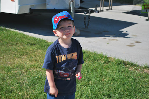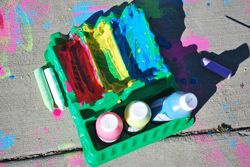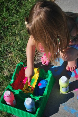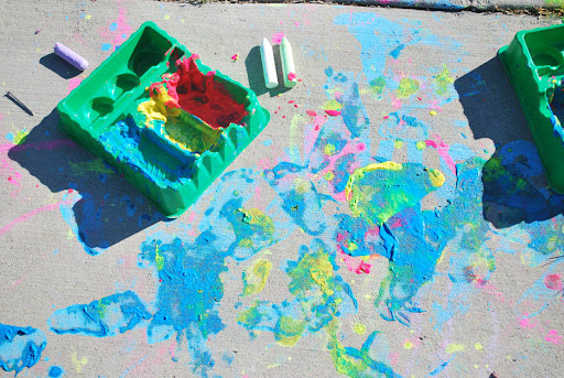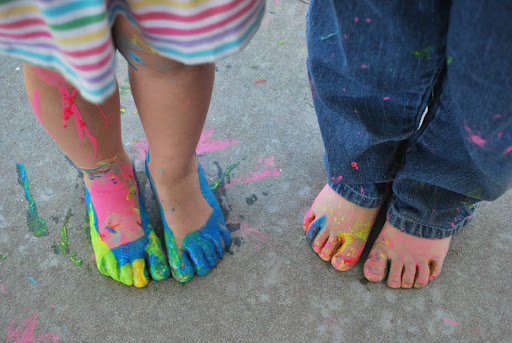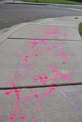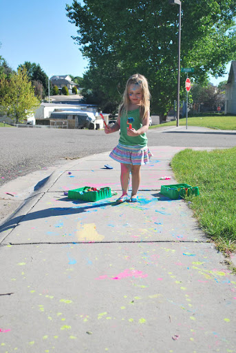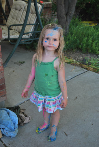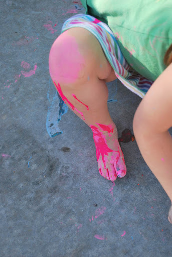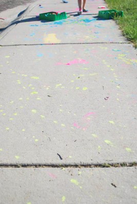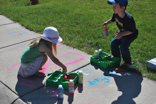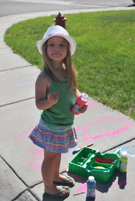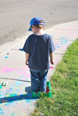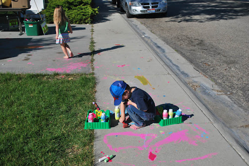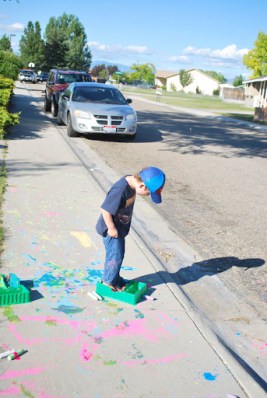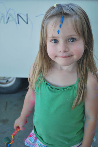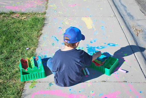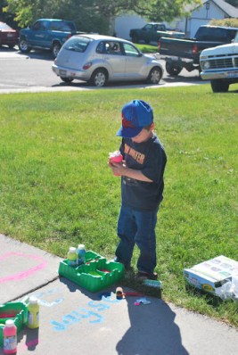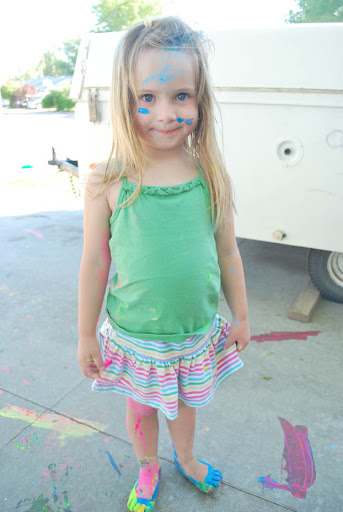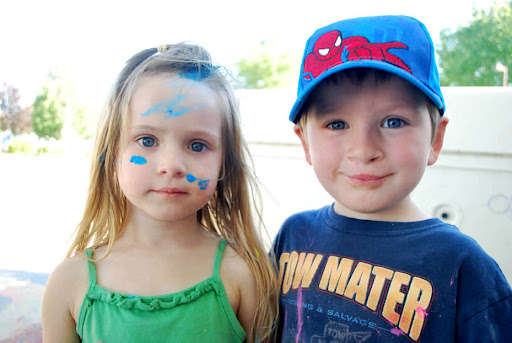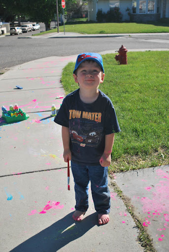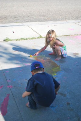 My good friend bought the kids some chalk paint. It was a lot of fun to play with. After a while I went inside to start dinner and they stayed outside to paint. Each time I came out there was more paint on the side walk and themselves. They even painted our pop-up trailer and dad’s jeep. They had a lot of fun though and it was really easy to wash off.