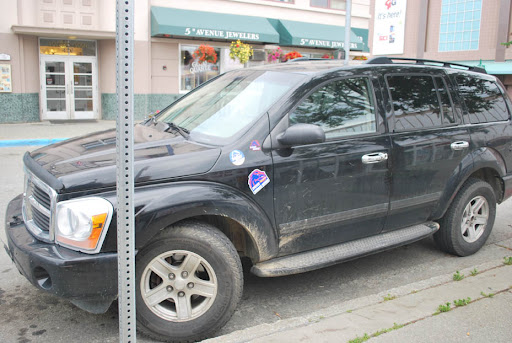 (When we walked out of the restaurant we saw this car and I thought it was funny we were all the way in Alaska and one of the first things we see is a car with BSU stickers on it)