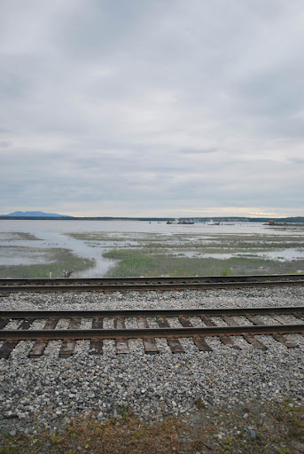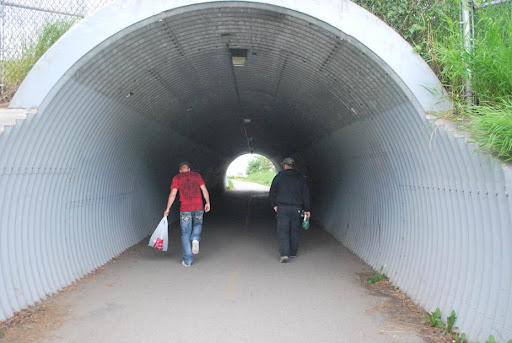 It was getting later but it was still so light out that we couldn’t go back to our rooms to sleep so we continued to walk around. I wanted to get a picture of the ocean and the fishing boats so we walked to the edge of town towards the ocean. We found a nice little trail and followed it. We found a tunnel that the train went over and we stayed under it until a train came by. We all expected it to be super loud but it wasn’t.
