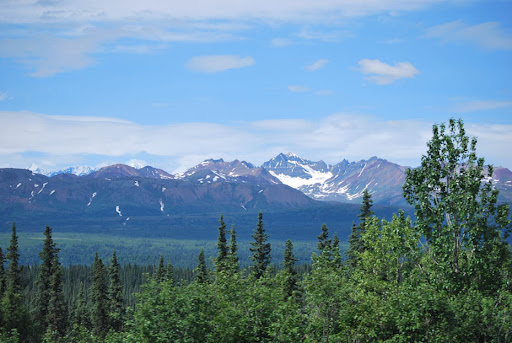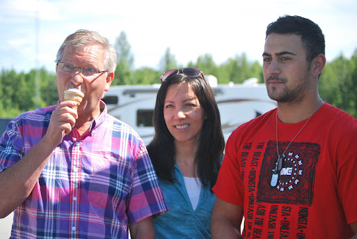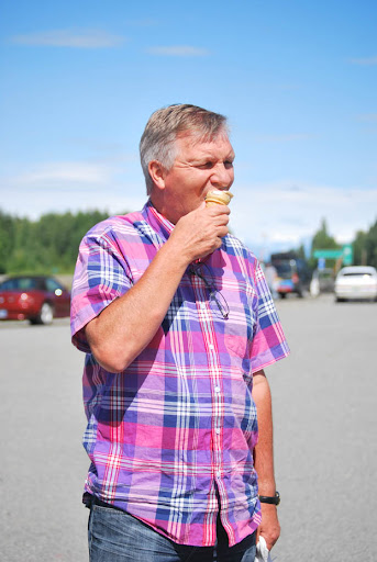 After breakfast we drove from Anchorage to Denali (Mt. McKinley). The drive was really pretty. We made pretty good time by only stopping once at a convenience store. It was interesting while driving through Alaska I saw ice cream shops and signs all over the place. And a few of us got an ice cream cones at the gas station on our stop. I later found a sign that said Alaska consumes the most ice cream out of any other state.