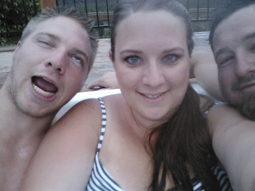 After shopping Greg, Jaron, Hunter & I spent some time in the hot tub. We had a beautiful view of the mountains and the water below. We were out there until midnight and it was still pretty light out but when we were walking back to our room we did manage to see a pink sunset.