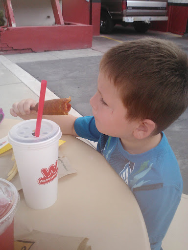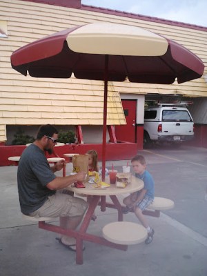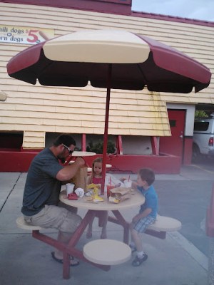 Friday I thought it would be fun to do something with the kids in Utah. There are a lot of things you can do in Salt Lake and since we were there we might as well take advantage of it. We decided to go to the Salt Lake City Hogle Zoo. Their zoo is much larger than the one we have in Boise and I thought the kids would have fun. On our way to the zoo we decided to have lunch at a Wienerschnitzel – it’s a red and yellow A-frame drive thru that mainly serves hotdogs. Greg had never been to one and I thought he would like it. He got a couple of hot dogs with all the fixing, I got a foot long and the kids got corn dogs. Greg thought it was alright, he said he prefers his hotdogs on the grill but now he can say he ate at Wienerschnitzels.