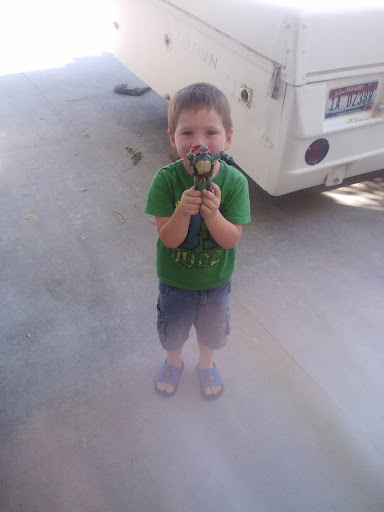 (Jayse got a ninja turtle from Shae at the sitters and Jaelee got a luau necklace)