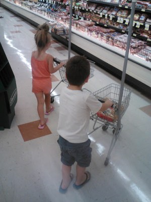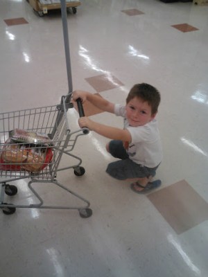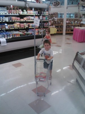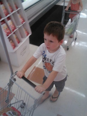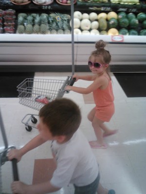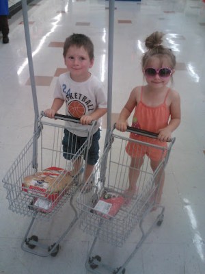 (We went to Pauls to get a few things and they had these cute little kids carts. The kids LOVED them until Jayse hit Jaelee with his. I thought they looked adorable strolling around with the carts)