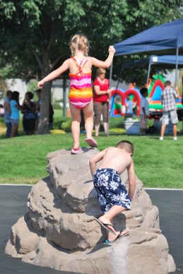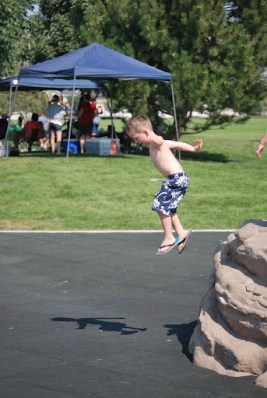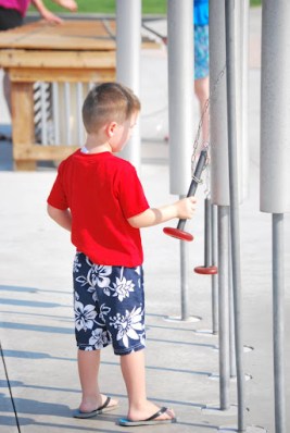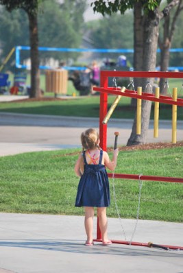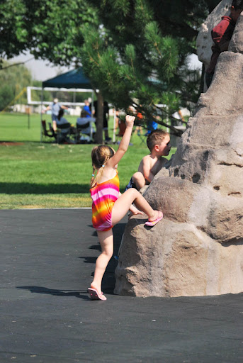 In August I took the kids to a park in Meridian that has a lot of stuff for them to do. There is a little water park that they can play in, toys to run around on, rocks to climb and instruments to bang on.