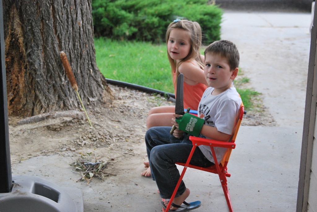 I thought cute the kids are outside pretending like they are camping. I went out there to see what they were doing. They had opened the garage and got out their camping chairs. They had put them around a small little stack of sticks they had collected from the yard. I thought it all looked very cute and creative. Until, Jayse flicks something in my face. It.Was.A.Flame. He had gone into the drawer where Greg keeps a lighter for the BBQer and was outside with it trying to start a fire with their little stick pile.