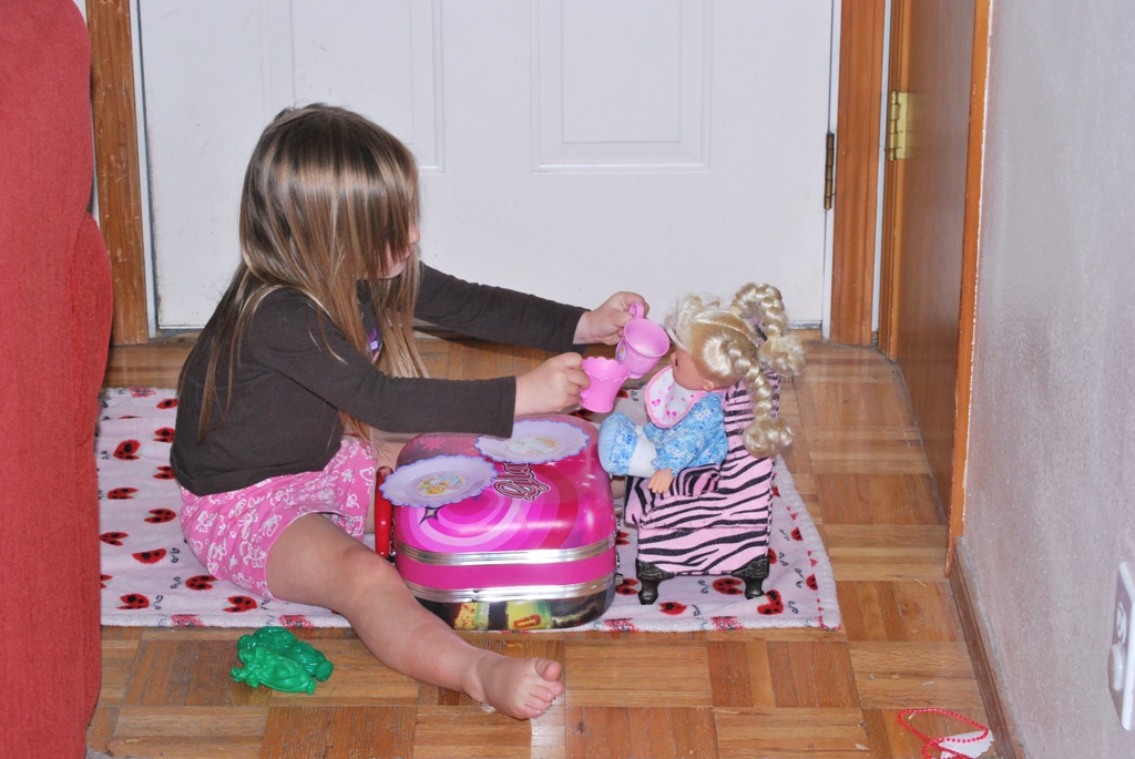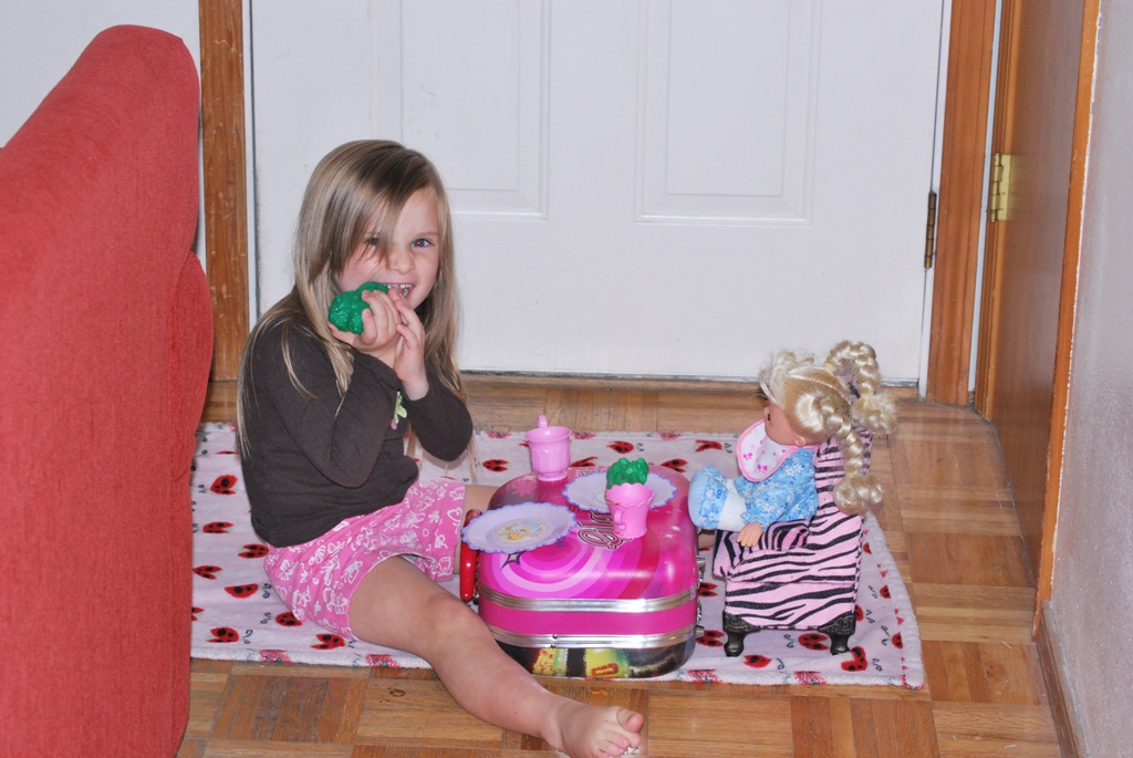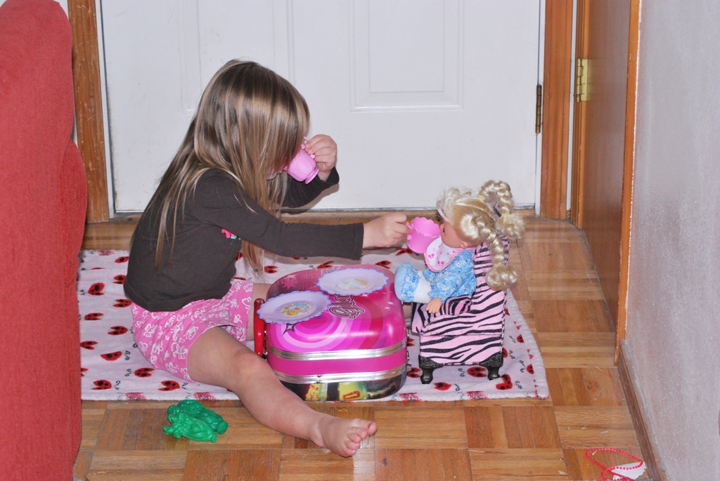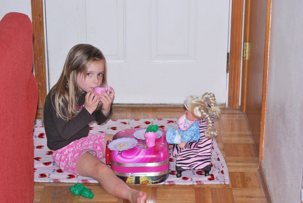 September 23, 2012March 14, 2020 Tea Party for Two Jaelee set up an entire tea party for her and her doll by our front door. She made a very nutritious party eating broccoli and drinking milk. Too cute! Share this: Click to share on X (Opens in new window) X Click to share on Facebook (Opens in new window) Facebook Like Loading...