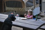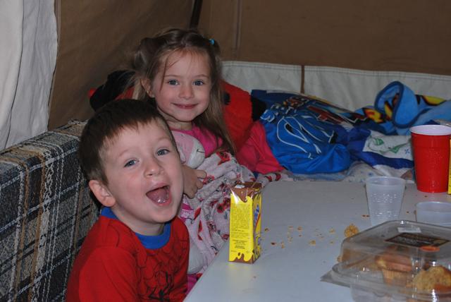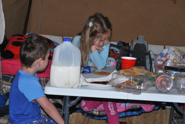 We had an hour and half drive so we didn’t arrive until it was really dark. We found a camp ground and quickly decided on a spot so we could get all set up. We got everything set up in the dark and went to bed right away.
