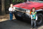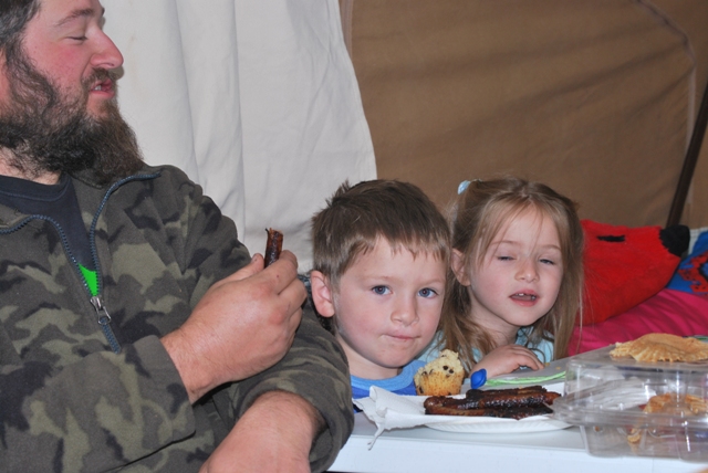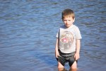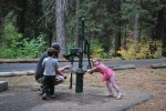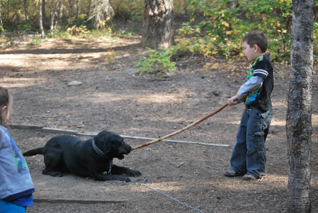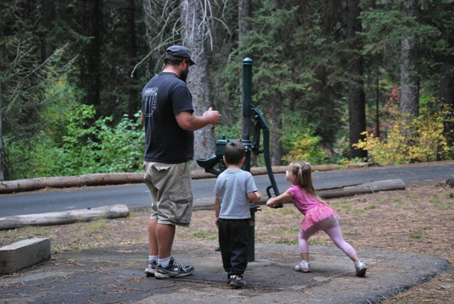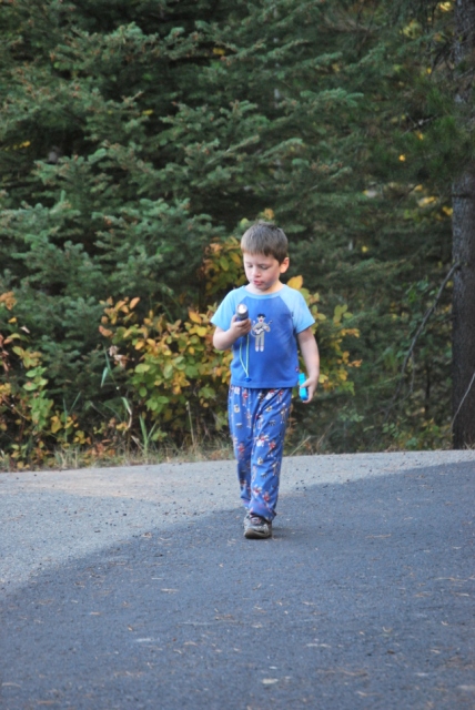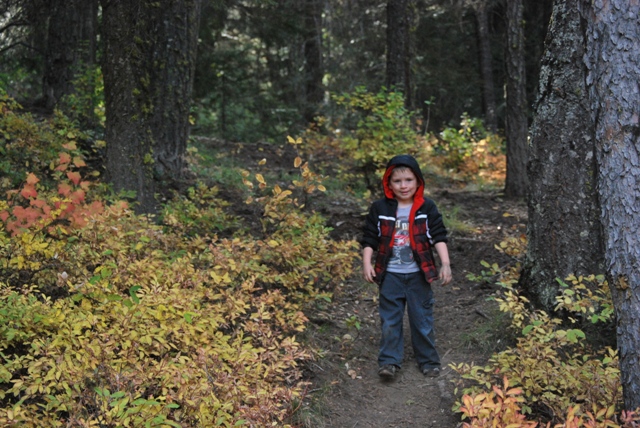 Greg got up early and went hunting while the kids and I slept. When they woke up we had breakfast and watched a few cartoons. Once we were dressed we headed outside the trailer to go hiking and see the water.