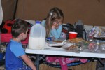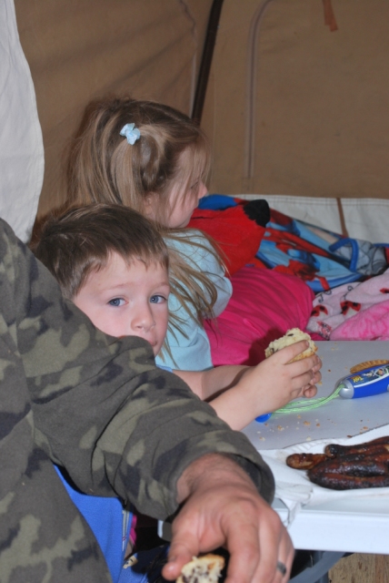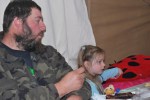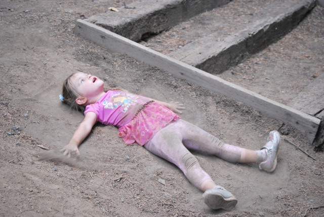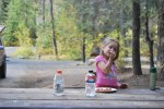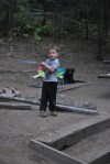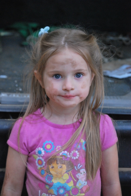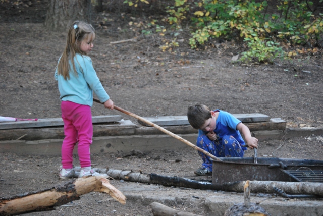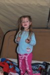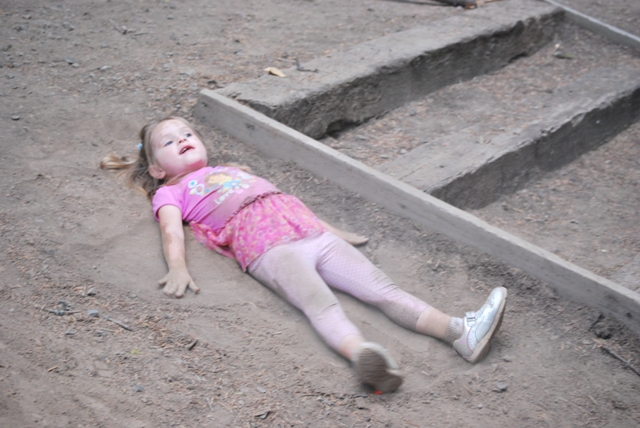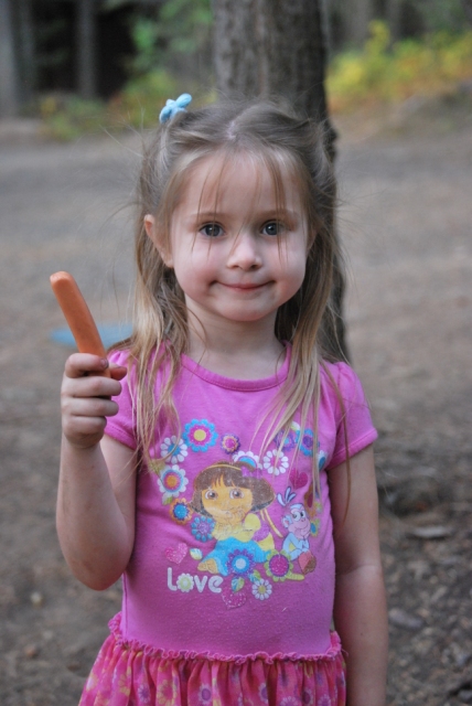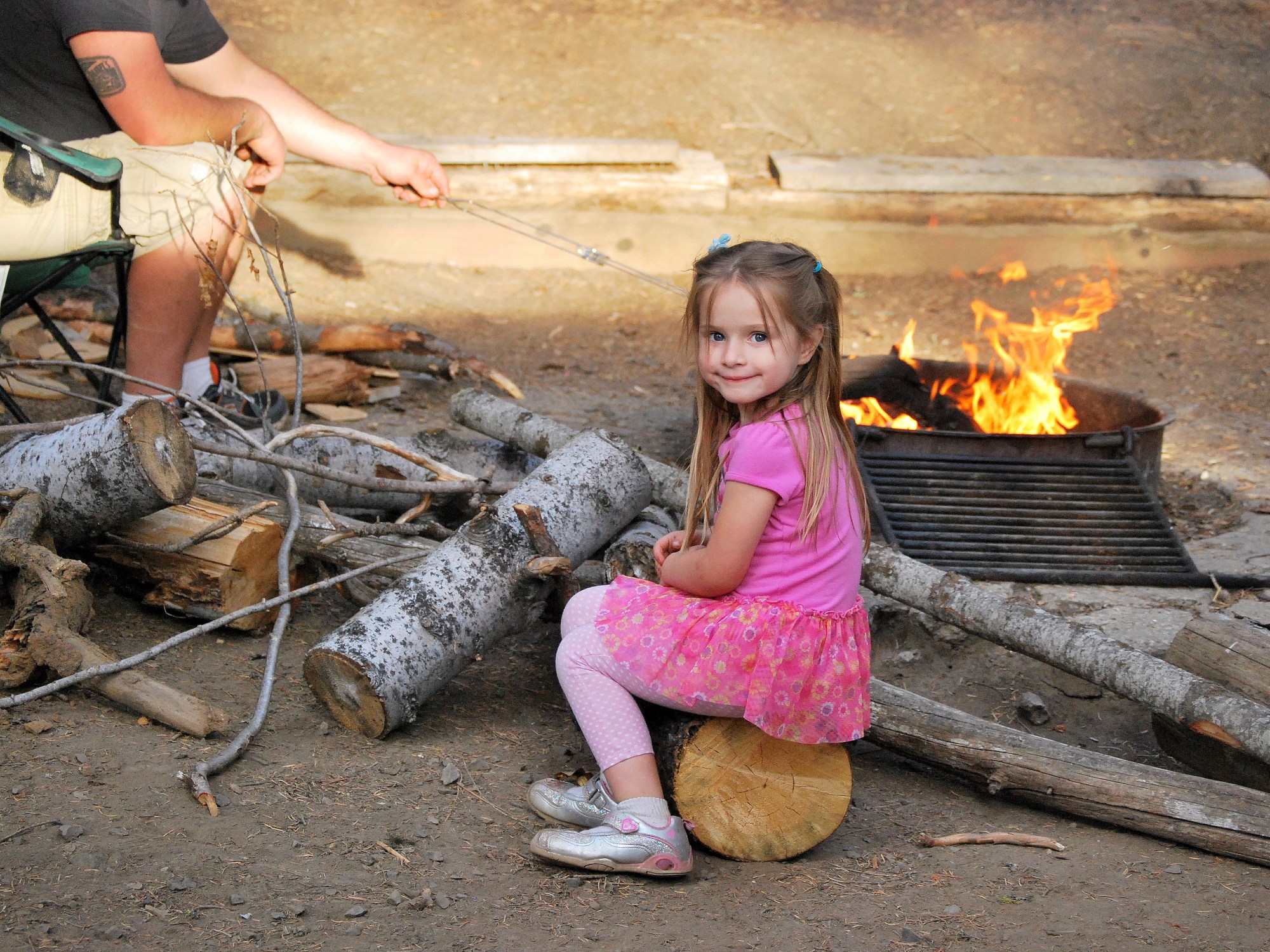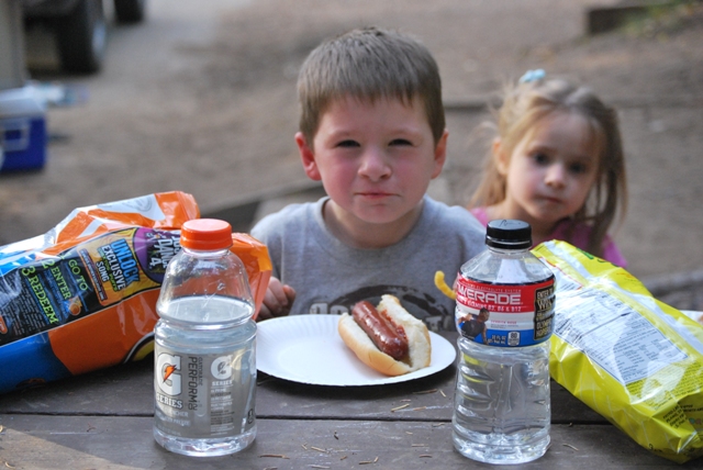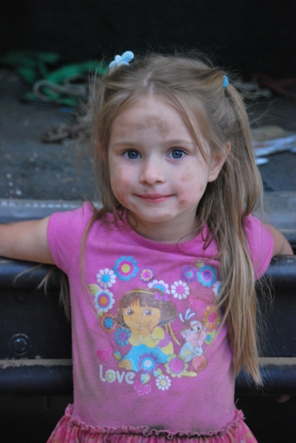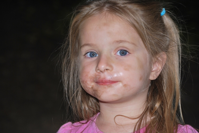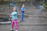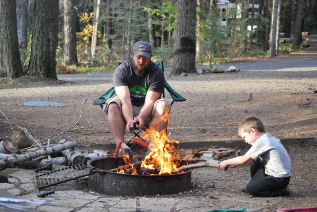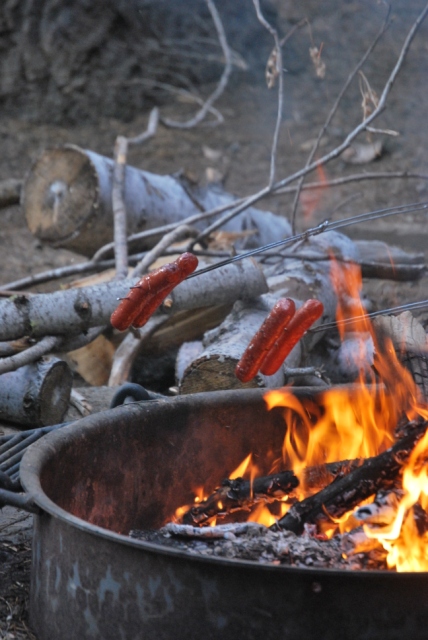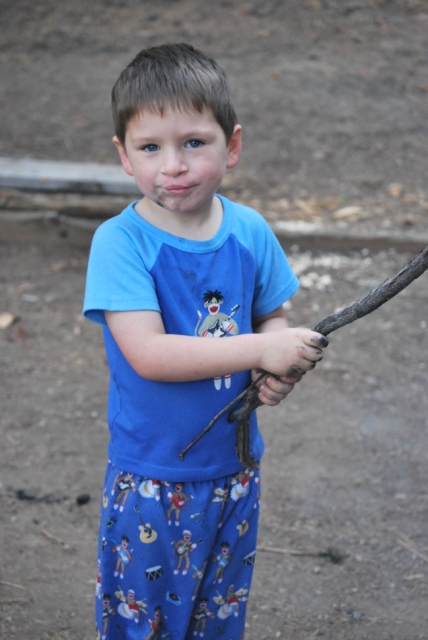 After fishing we went back to our camp site and ate hot dogs, watched movies and hung out by the fire. Jaelee rolled around in the dirt and made dirt angels. She looked really cute and got really dirty.