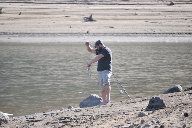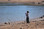Greg got back a little while later, with no deer. We decided to drive the jeep over to the small bit of water and try some fishing. It took us a few times driving around the reservoir to figure out how to get to the water. We had to go to the boat dock and actually drive on the dried part of the reservoir.
