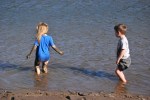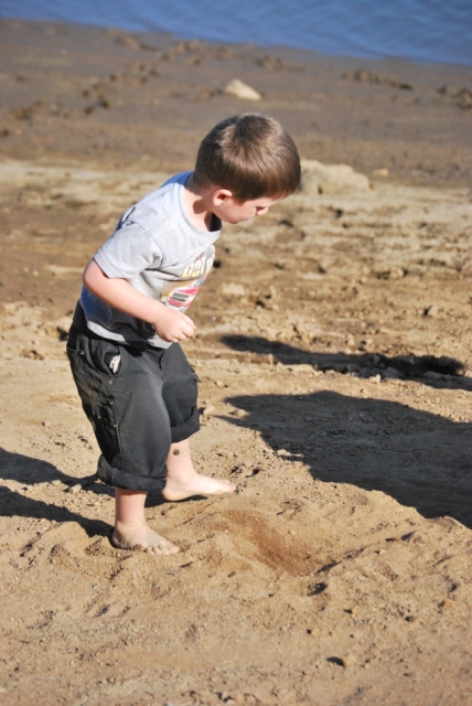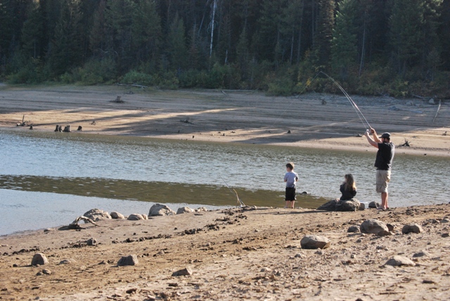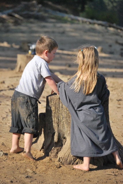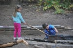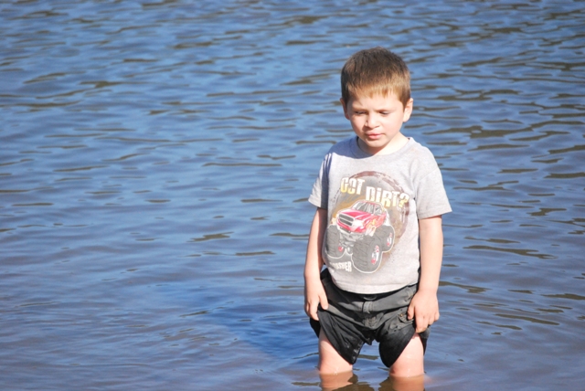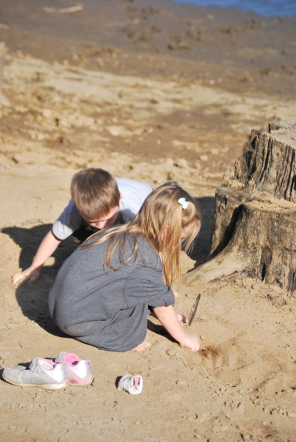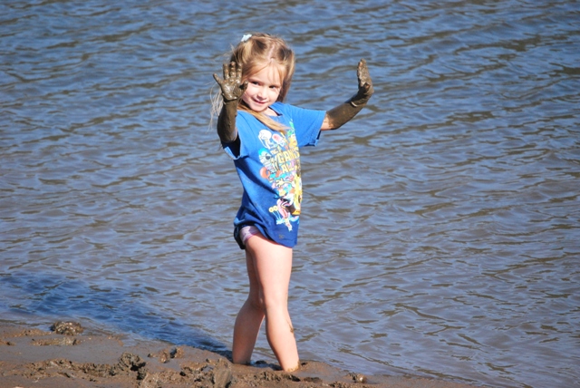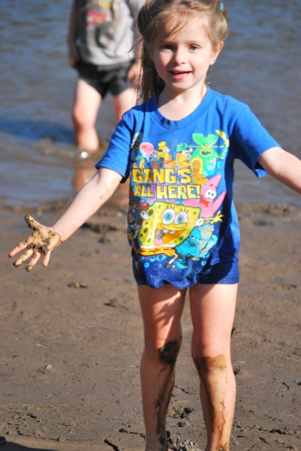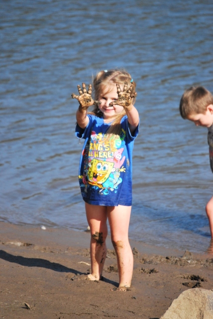 We fished for a while. The fish were jumping like crazy around us. Greg caught a couple fish but we threw them all back. The kids had fun playing in the mud and water. Jaelee at one point covered herself in mud and then was cold because she was all wet. I took off my long sleeve shirt and put it on her. Her and Jayse played a game where she would draw an X and Jayse would dig for buried treasure. It is so cool to see how their imaginations are developing.
