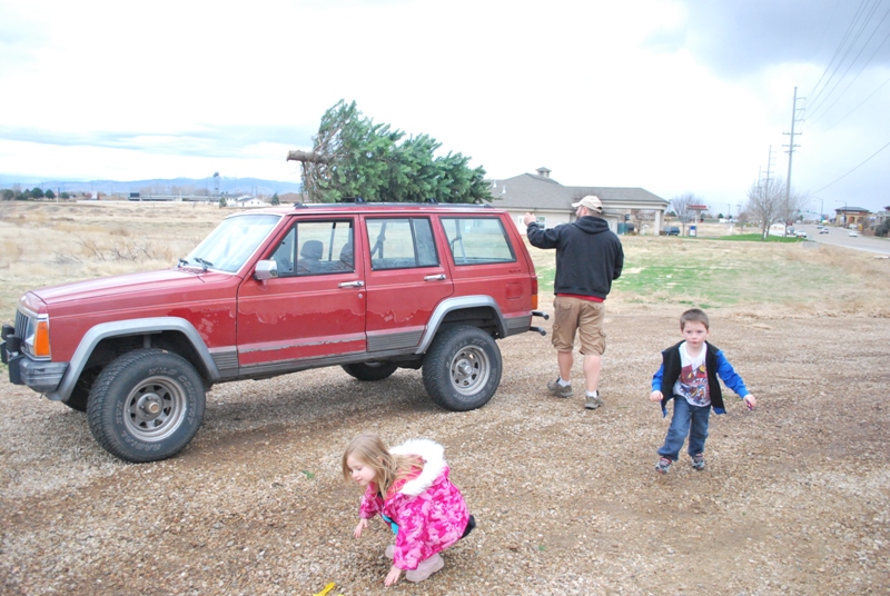 The kids ran around like wild children while Greg and I picked out the tree. While Greg was putting the tree on top of the jeep I snagged a couple pictures.