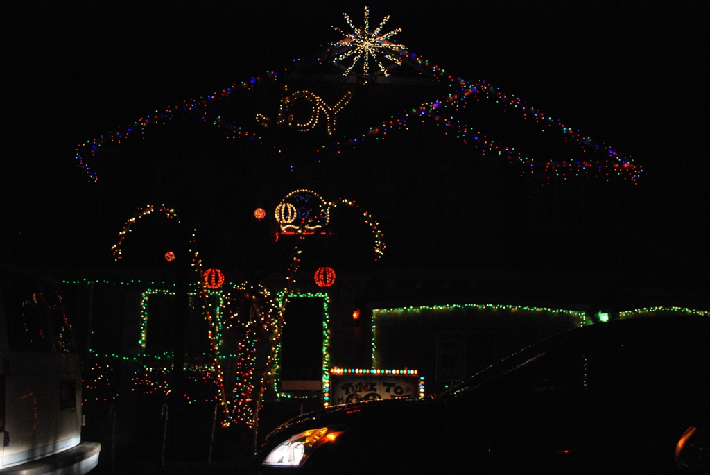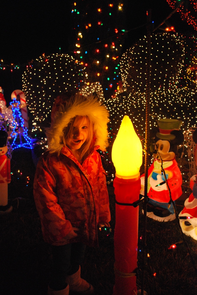 After that we decided to drive to another really cool house. This house’s front lawn is completely covered with lights. We had been there a long time ago and thought the kids would love to see it again. We made a huge mistake in seeing the house with music first because it didn’t matter what kind of lights were on any other house the kids kept saying they wanted music and to go back to the other house. We did get out at one house and walk around and drove past a lot of other great ones.