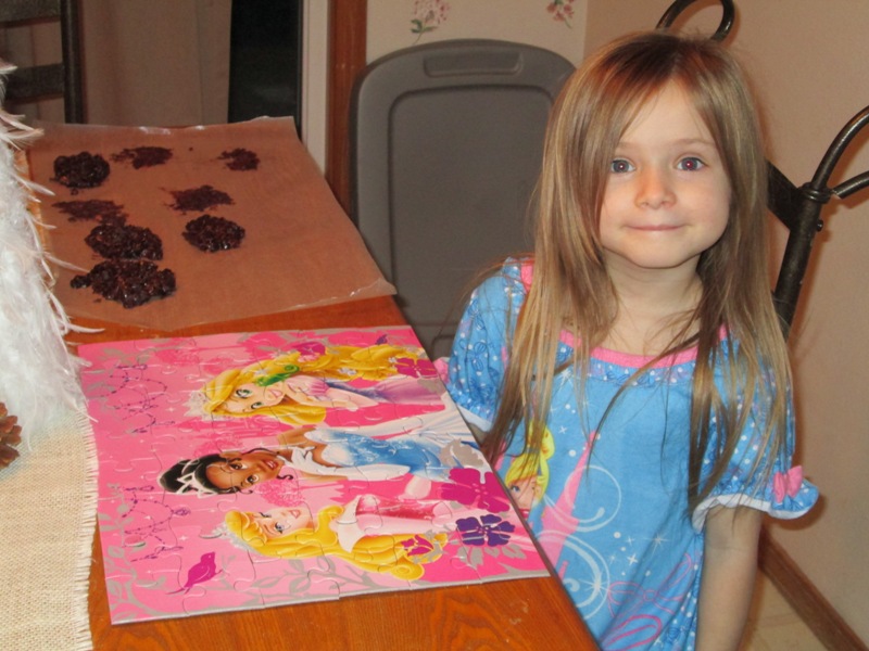 Jaelee did this puzzle all by herself and was so proud of herself she yelled at me to come take a picture.