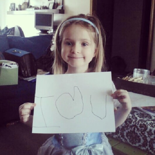 Little miss smarty pants did this all by herself. She looked at the necklace holder Greg made for me for our anniversary and wrote 1 ♥ U. So smart and cute of her.