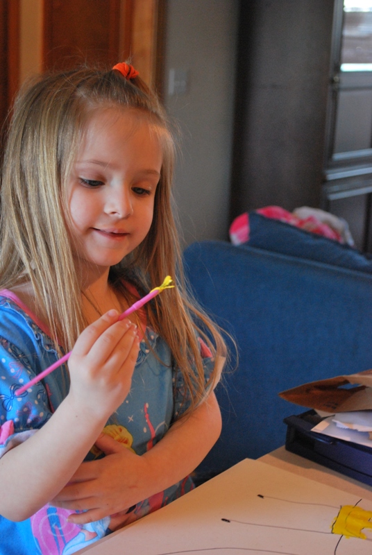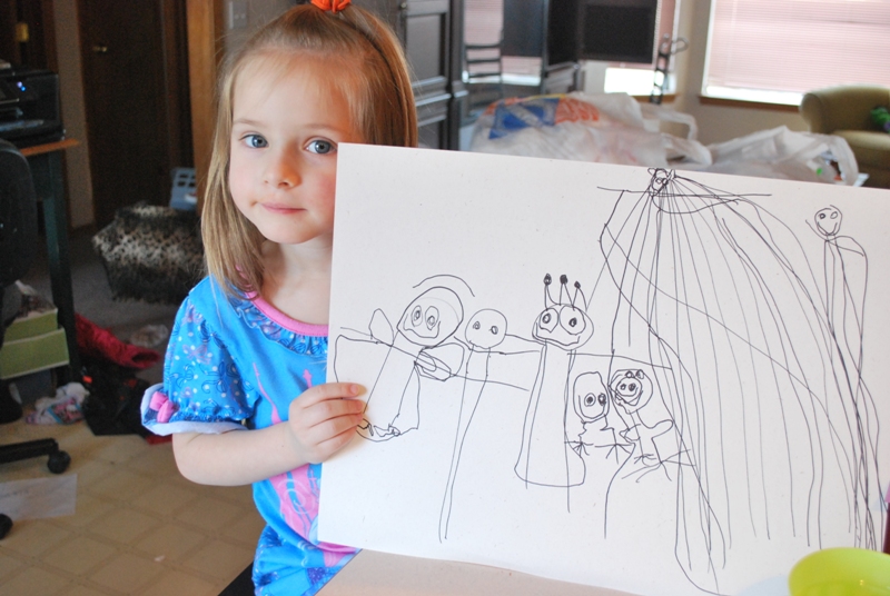 After that she drew a whole bunch of princesses and painted them as well.