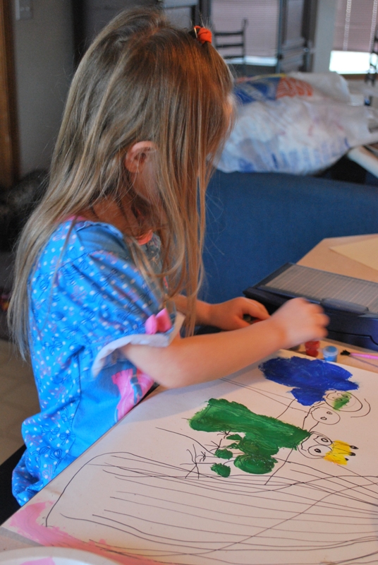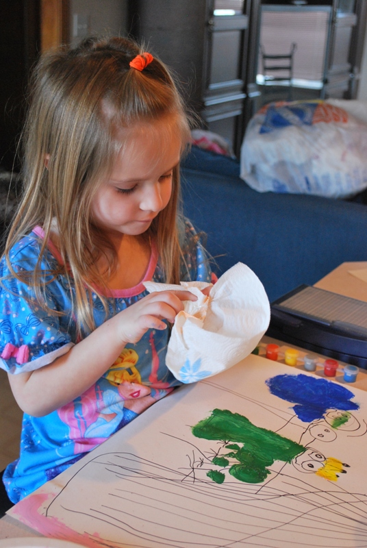 The first weekend in December Jayse and Greg went to his friends house to hang out so Jaelee and I stayed home and painted. She wanted to paint a large paint by numbers type picture but we didn’t have any so I grabbed a large blank piece of paper and told her to draw something and then she could paint it. I left her with the piece of paper and went to the bathroom. When I came back she had already decided what to draw and drawn it and it was AMAZING. She had drawn SpongeBob Square Pants and his pet Gary. CUTE! Just love it.