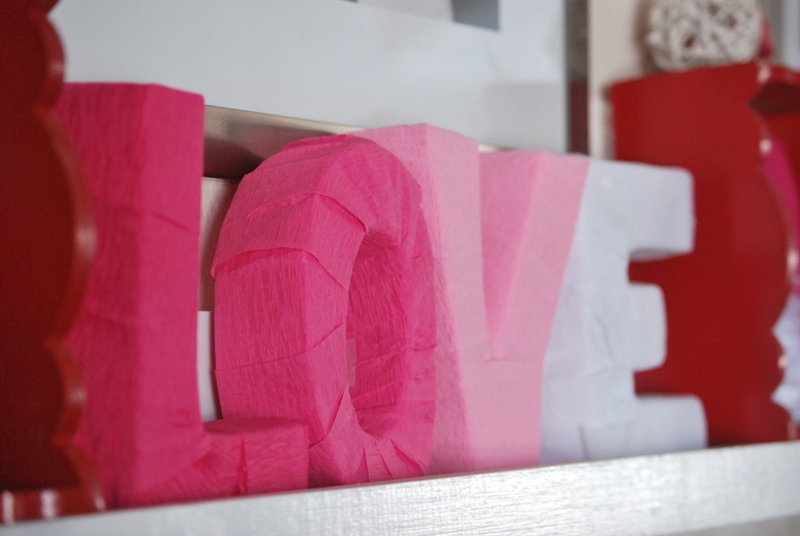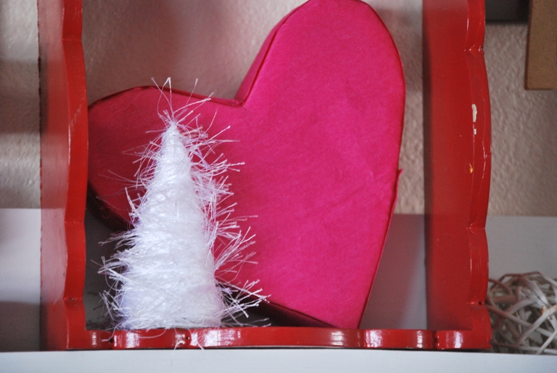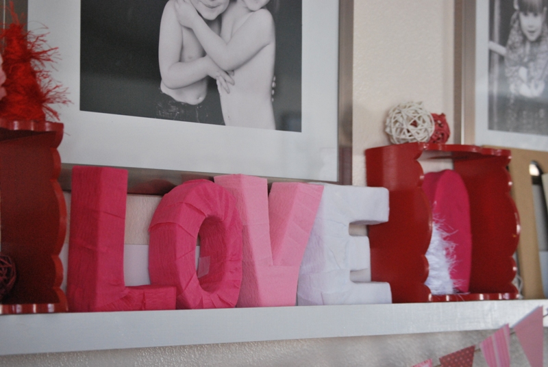 After pictures and the circus we spent the rest of the weekend indoors hanging out. I painted pictures on the kids they dressed up again and I decorated my shelf for Valentines Day. I made almost everything for the shelf during the weekend and I was really happy with how it turned out.