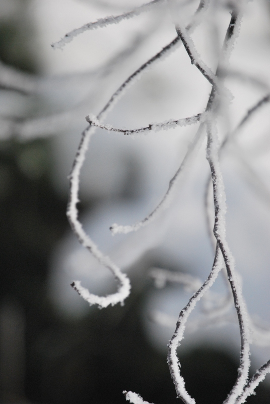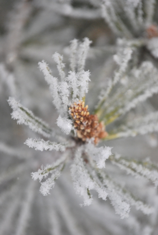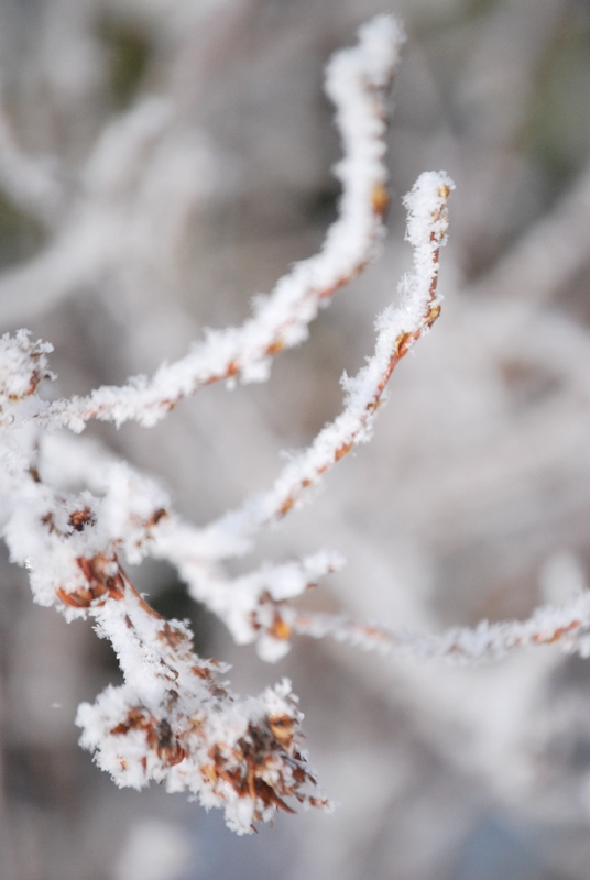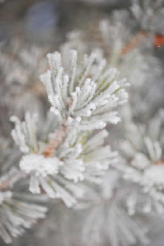 For several days when we got up in the morning everything was covered in this light layer of ice/snow/frost. I thought everything looked so beautiful. It was too dark in the morning to get pictures so I came home on lunches and spend the whole time trying to get pictures of the trees and anything else I could with the frost on it. Here are some of the photos.