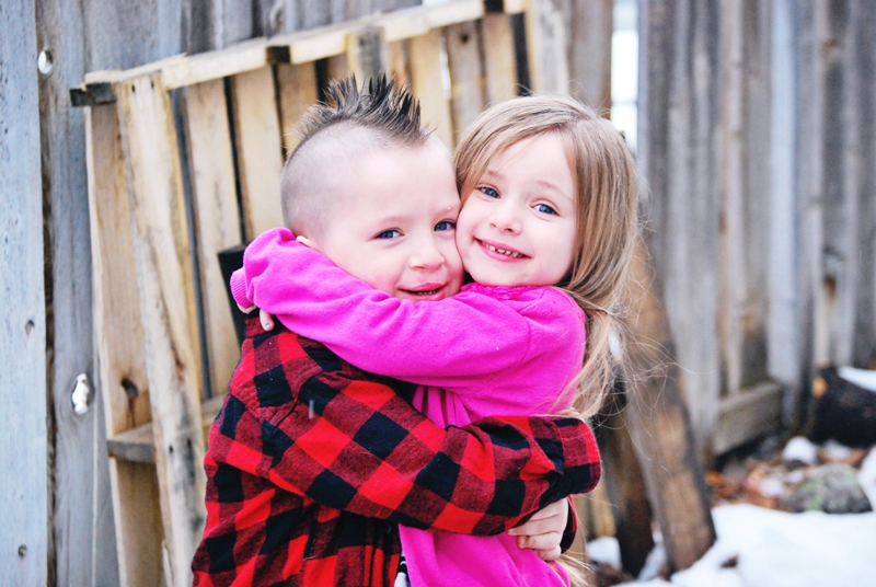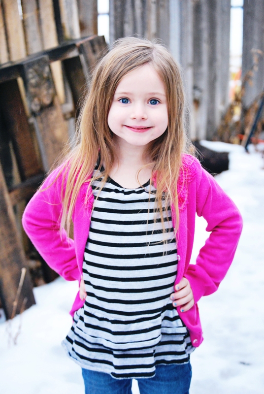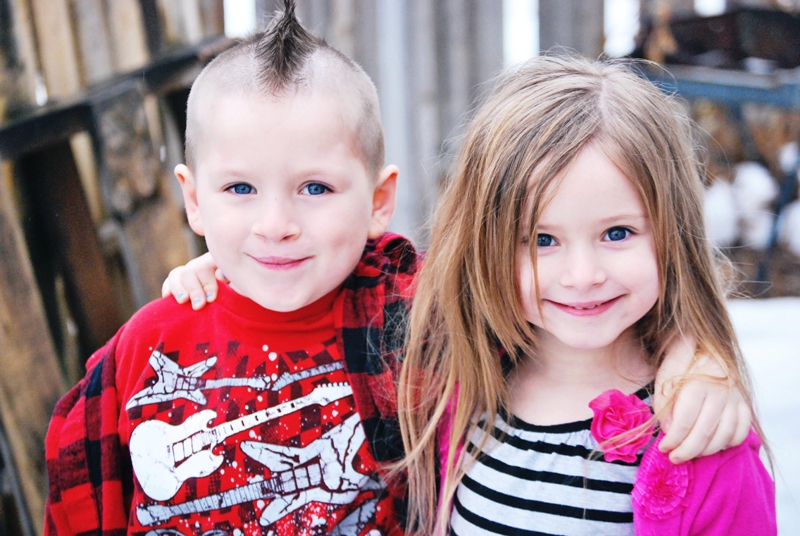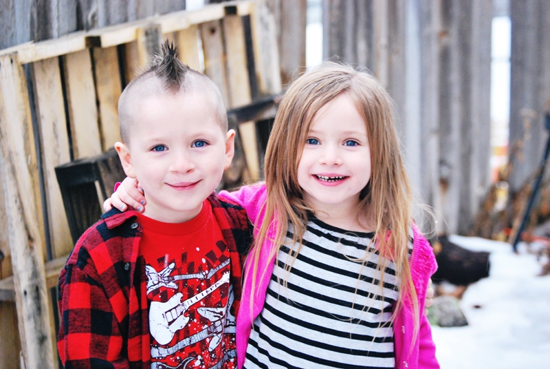 After we were done with the hair cut I took the kids outside in the rain/snow to get a couple of pictures of the new do.