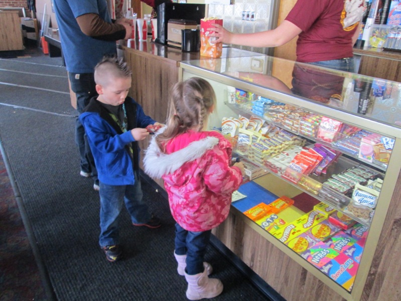 At the end of January we took the kids to the discount theater to see Hotel Transylvania. We went to Overland Park Cinemas, it is one of our favorites. The theater is really old and neat looking and you get a movie and 2 treats her person for $5 each. Steal of a deal compared to the new theaters.