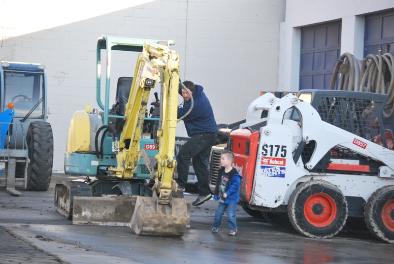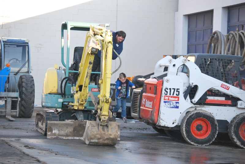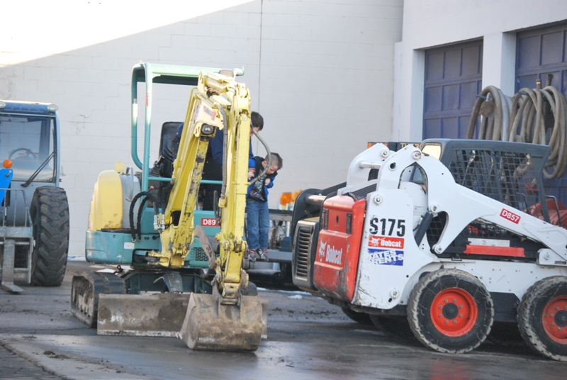 My car was leaking transmission fluid and was slipping out of gear so Greg had to work on it, we went down to his work to work on it there. Here is a picture of Greg and Jayse “working”