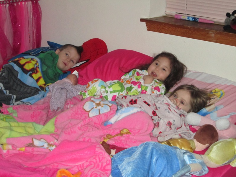 Mia got to come and spend the night with us. It was the first sleep over the kids got to have at our house. They all slept in Jaelee’s bed. It was really hard to get them from talking all night and just go to sleep. They all loved it though and had a great time.