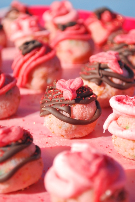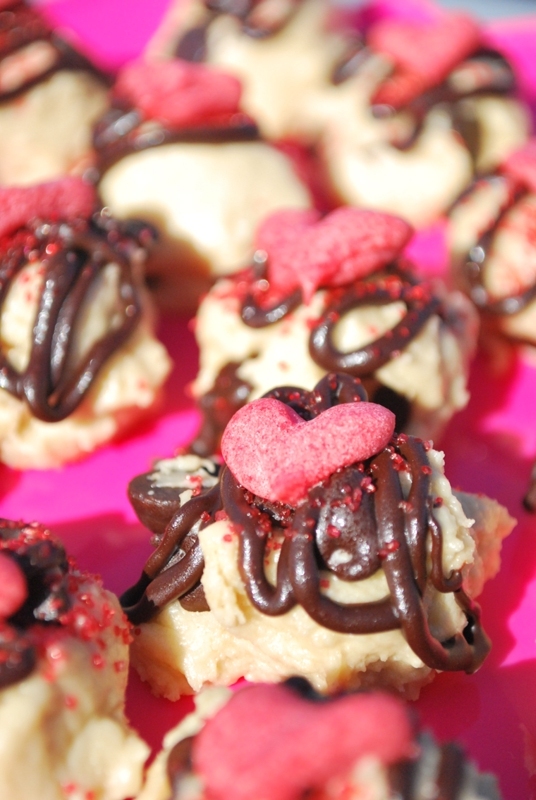 On Valentine’s Day in the morning I cut out hearts and strung them on string and Greg helped me tape them to the kids’ doors for a heart attack! Our daycare was closed on Valentine’s day so Greg stayed with the kids for the first half of the day and I came home in the afternoon. My work was having a desert bar so I made a few things to bring. They did not turn out like I had wanted to this was plan D but in the end they looked pretty good and tasted awesome.