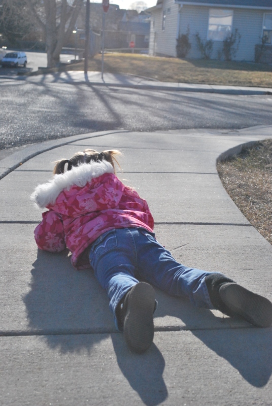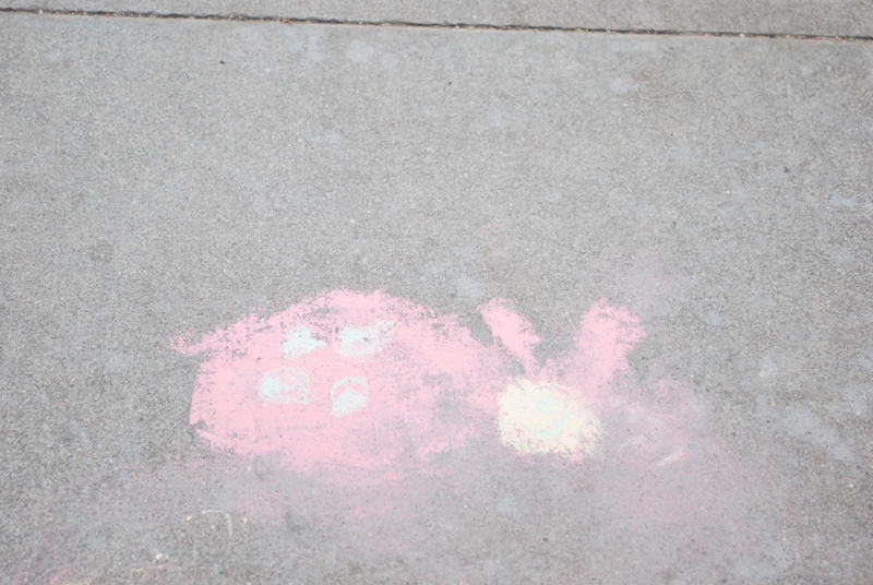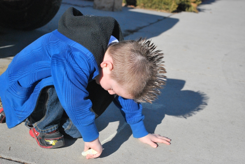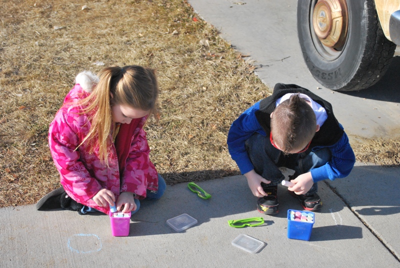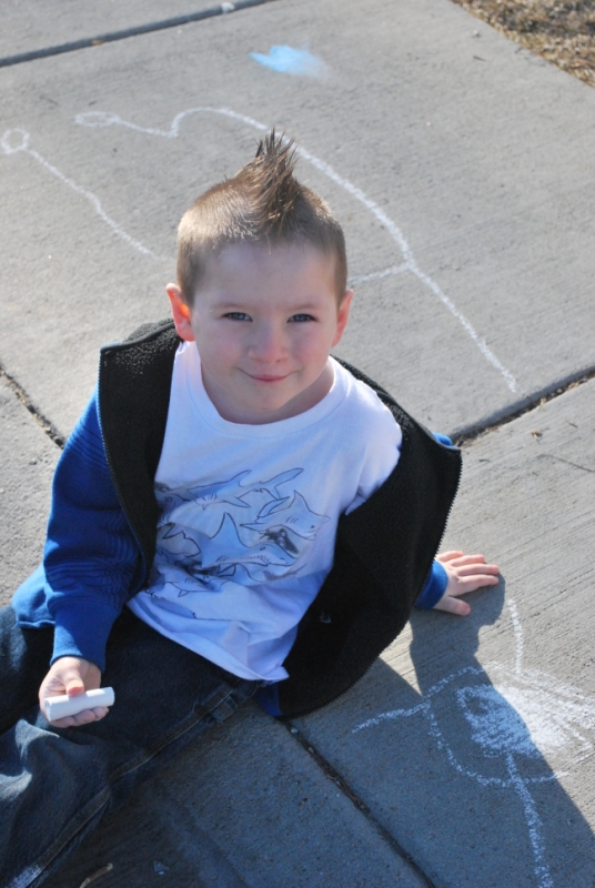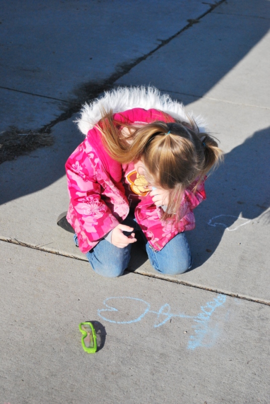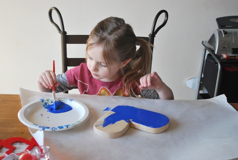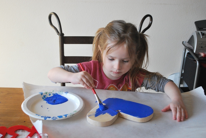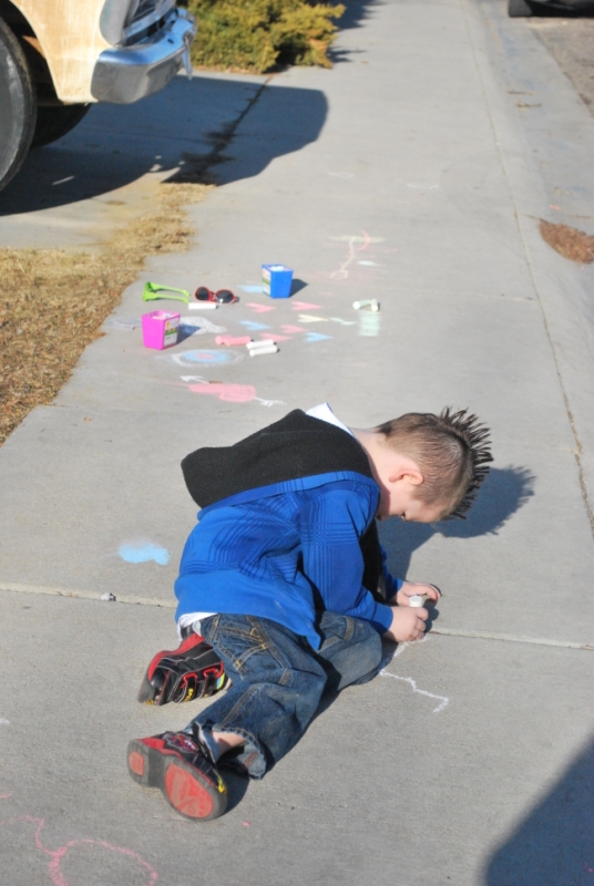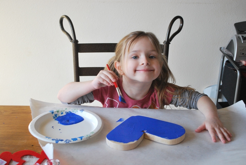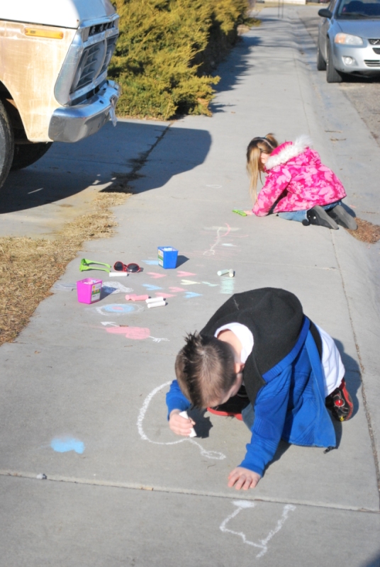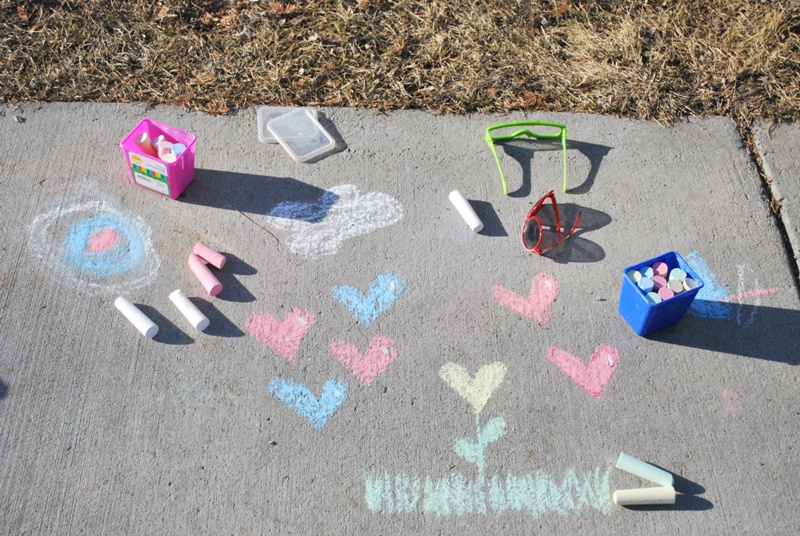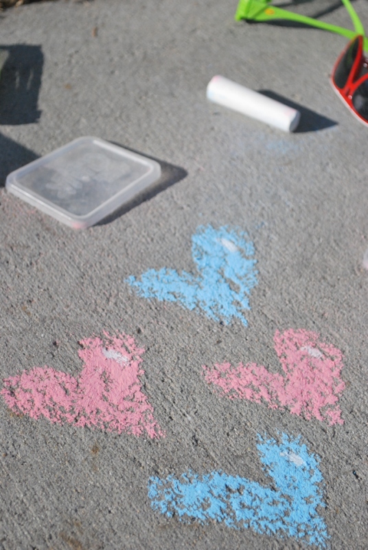 When I got home the kids and I went outside and drew on the side walk with chalk. When we were done with that we came inside and Jaelee painted a blue heart and then the kids cut out their own hearts from pink and red paper.
