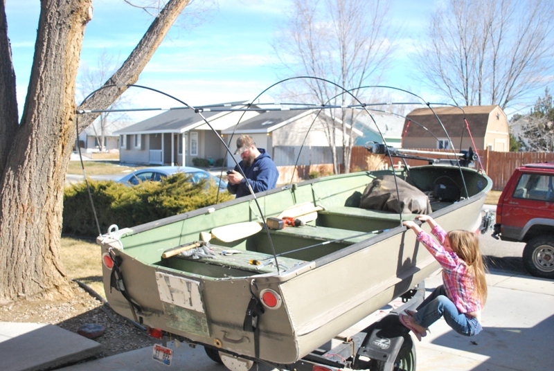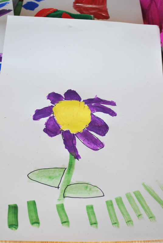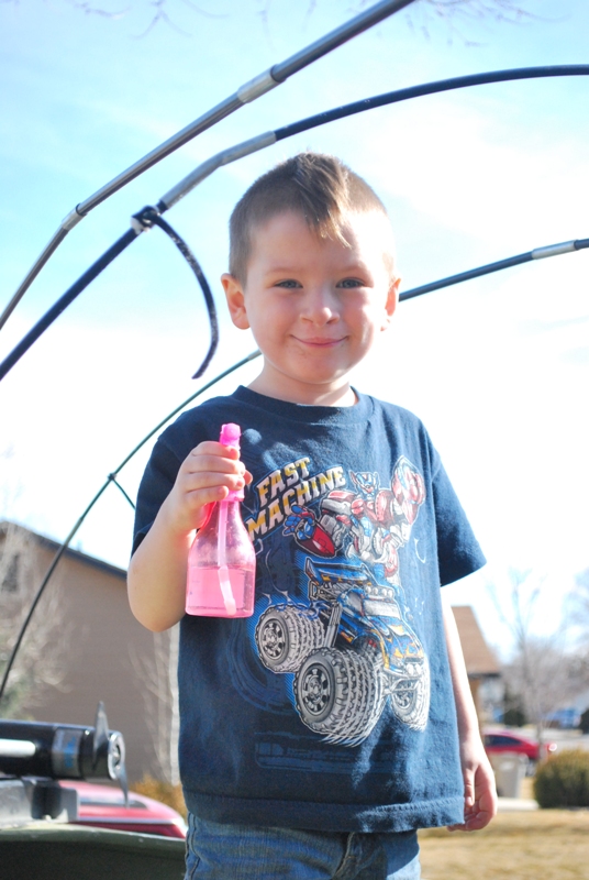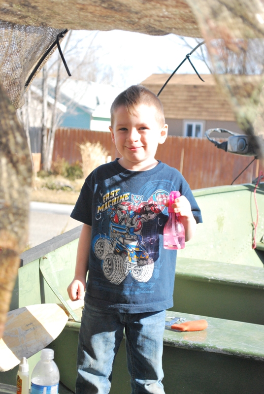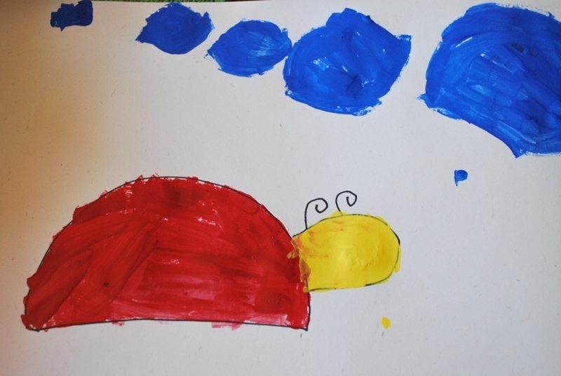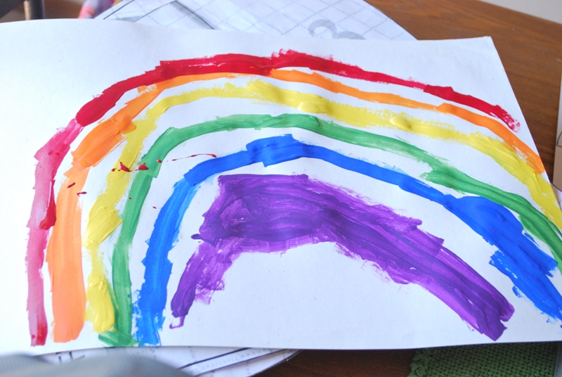 Greg was outside creating a duck blind for his boat and the kids were out there helping him. After a while Jaelee and I went inside to paint. I was creating a display on my shelf for St. Patrick’s Day and wanted a rainbow to go with it, so I painted one. Jaelee did a beautiful rainbow and then after that she showed me how to draw and paint a lady bug with clouds and a flower. They turned out perfect!