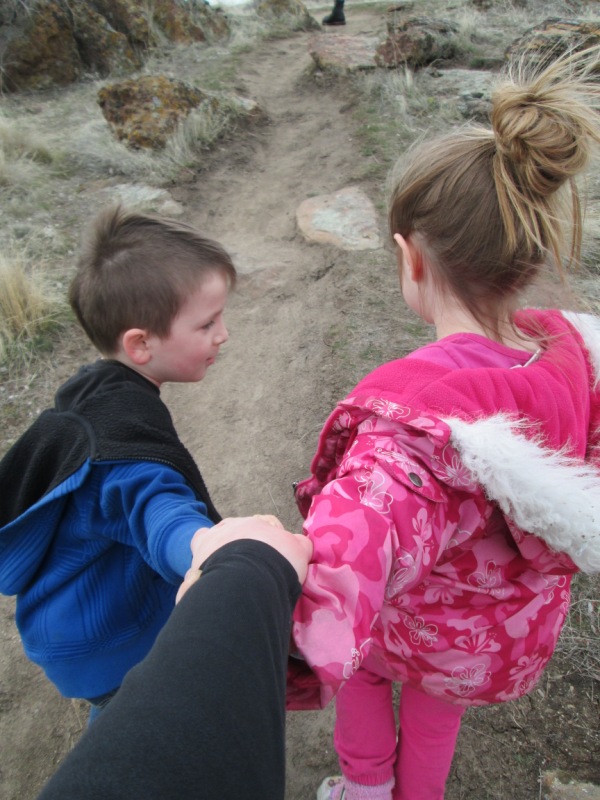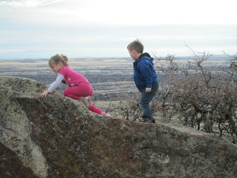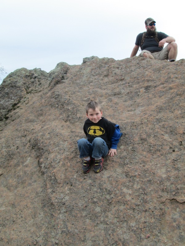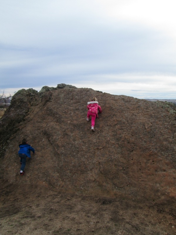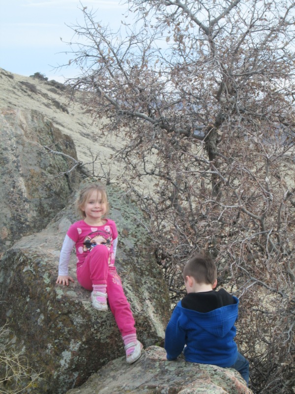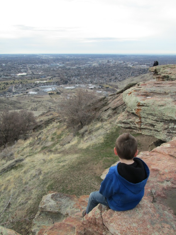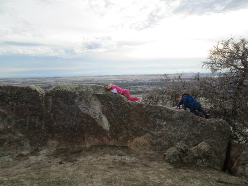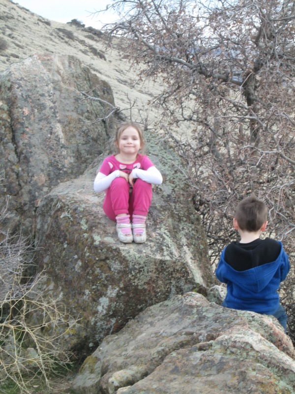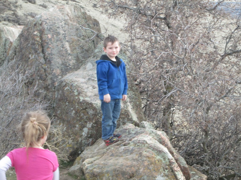 We’ve decided that every month we are going to take a hike somewhere new. For March we didn’t want to have to drive too far so I picked table rock. I hadn’t ever been there and thought it would be a pretty easy hike for me and the kids. We started by the golf course and set out. The first part of it wasn’t too bad, the kids were running ahead of us and having a real good time. We stopped along the way for them to climb on rocks.
