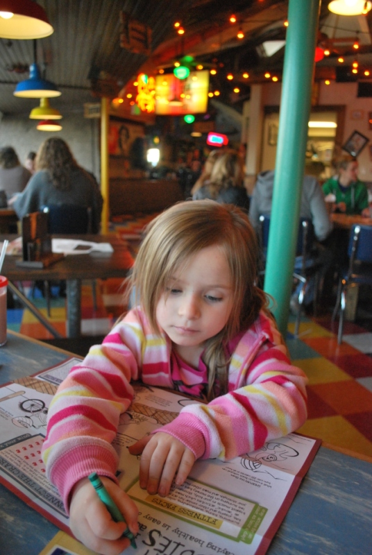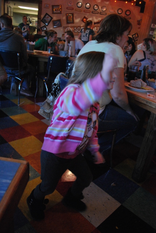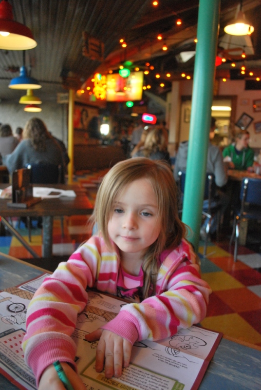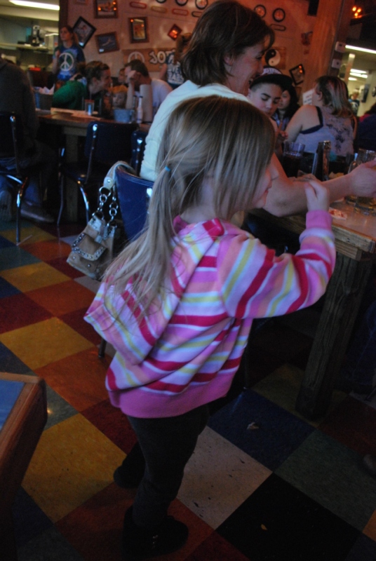 Jaelee and I went to Joe’s Crab Shack for dinner. I thought it would be fun with her because the interior is all decorated and the wait staff dances to particular songs. We had a seat right by the window so we could see the river and we had a really great waitress. When they started their dance she asked Jaelee if she wanted to dance with her and Jaelee didn’t even hesitate she jumped up and tried to dance right along with everyone else. It was so cute! After dinner we walked on the green belt for a bit and then headed home where we painted our toe nails.