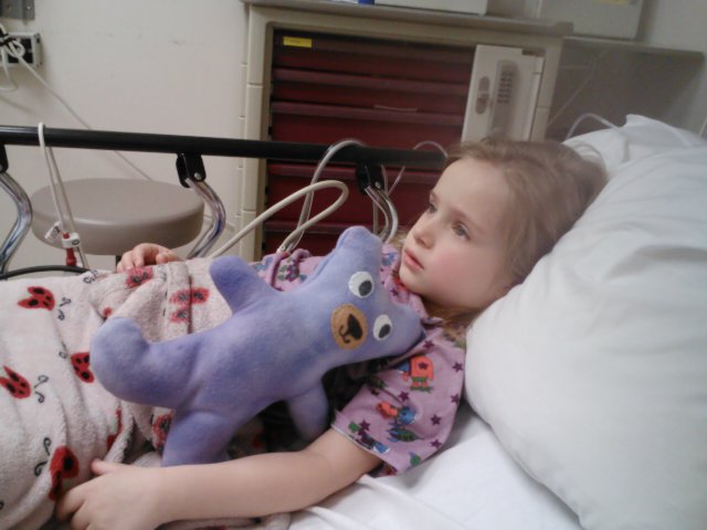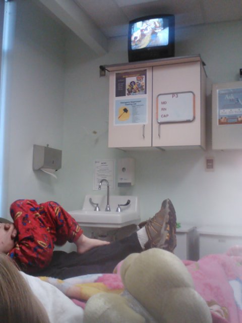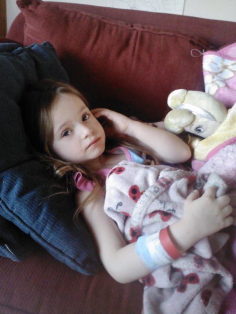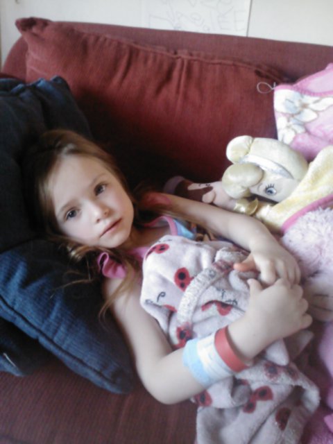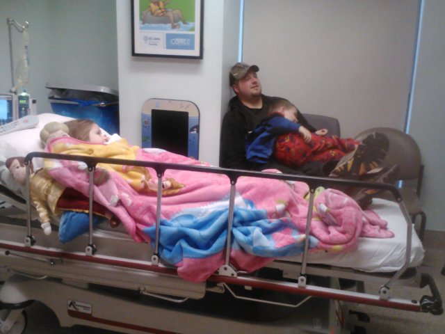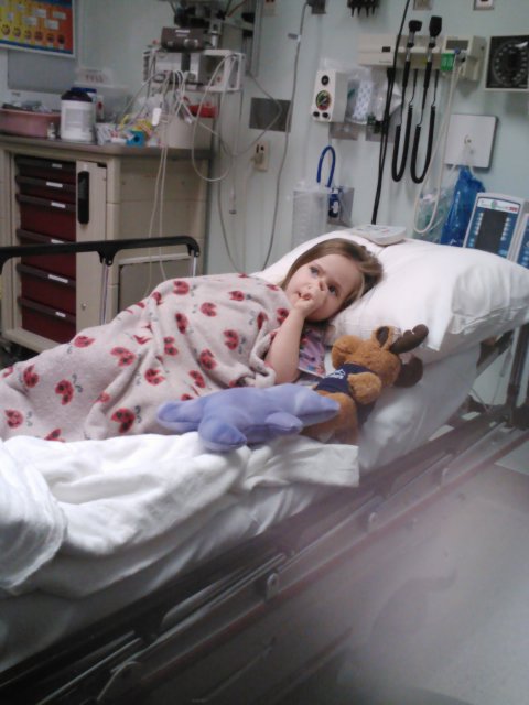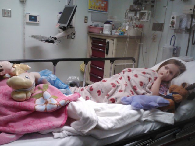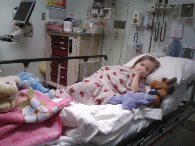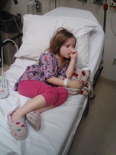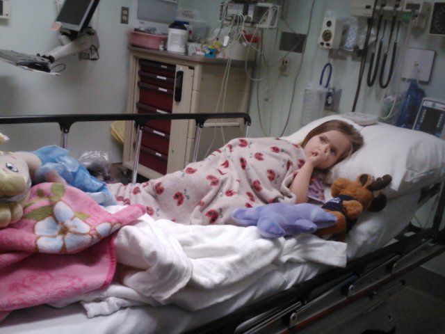 Jaelee had been complaining about her stomach hurting for an entire morning. I thought it might be gas, constipation or a bladder infection. When she started to get a fever and lay hunched over in pain I thought it was time we take her to the doctor. I called our regular doctors office and made an appointment for her. Since I didn’t think it was anything major I asked Greg if he could take her while I continued to get ready for a birthday party. Greg called me after the doctors appointment to tell me that they were sending him and Jaelee to the ER. They were concerned that she had appendicitis. I immediatly got Jayse and met Greg at the ER.