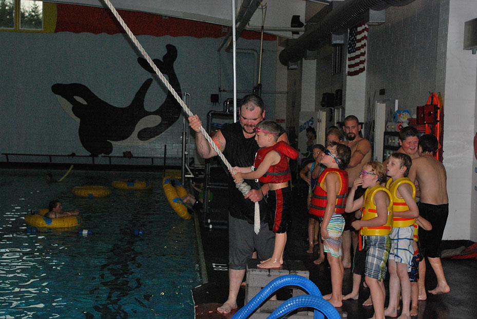 That night we took the kids to the pool while the guys went golfing. This was the first time the twins were able to go on the rope swing. Jaelee did it without hesitation. Jayse on the other hand, had another dad talking to him to try and get him to go and he wouldn’t, then Grandma went over there and talked to him and he finally went. Just barely making it into the water before he let go. After the first time though he got used to it and did it with no problem after that.