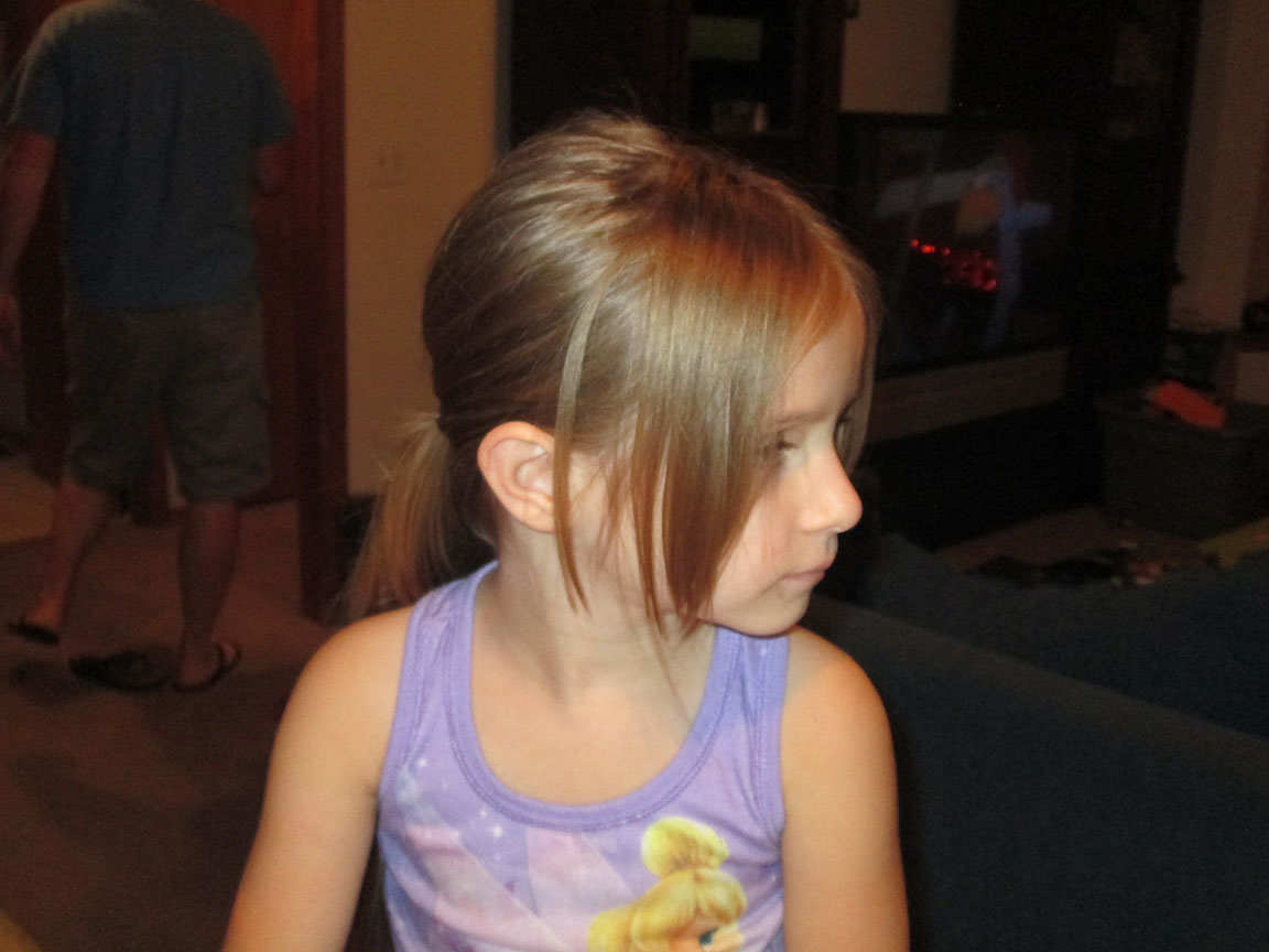 When I picked up the kids I saw what Jaelee had done and it wasn’t too bad and it was pretty even so I just left it. From then on I’ve made sure her hair is back so it doesn’t get in her way anymore!