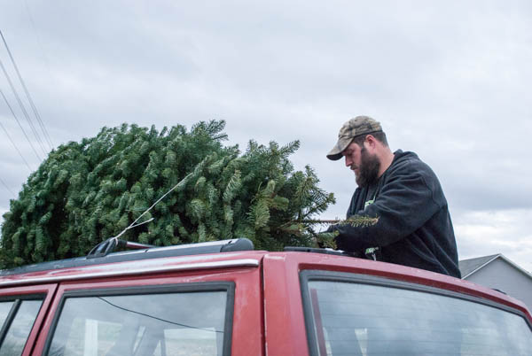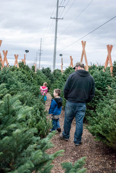 The kids still don’t seem to care to much about helping pick out the tree, they kind of just run around in the trees. Greg always finds us a good one and helps to get it on the jeep.
