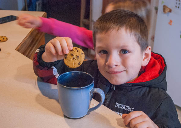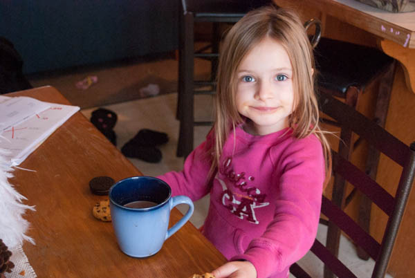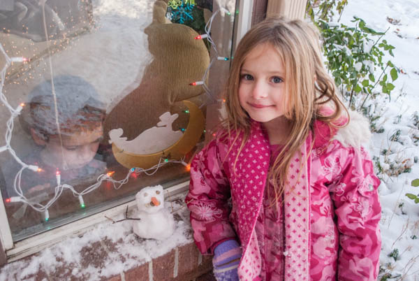 After Greg was tired of pushing the kids on the hill we came back to the house and the kids continued to play outside in the yard. Jaelee made a small snowman in our window seal. After we were all played out we came inside to enjoy some hot cocoa and cookies. Here’s hoping we have a few snowy days like that this year!