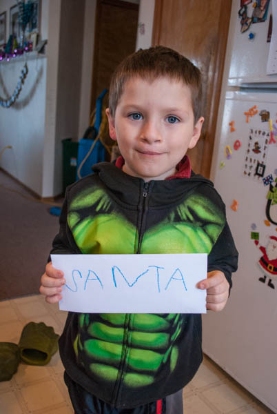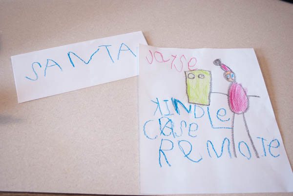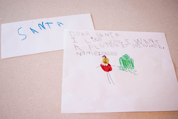 Dec. 8th the kids made their letters to Santa. I thought they were so cute this year because they now know how to write. They were able to put together a list of what they wanted and draw little pictures for Santa.