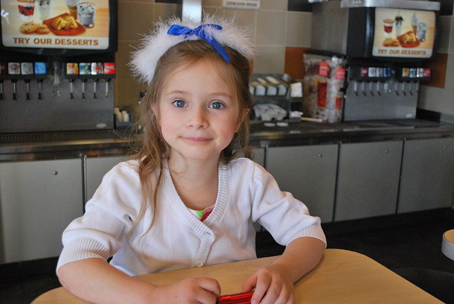 Before the recital I have to take her early to the dress rehearsal. Between the rehearsal and the show we had an hour or so to go get something to eat. She of course chose her favorite place, McDonalds!