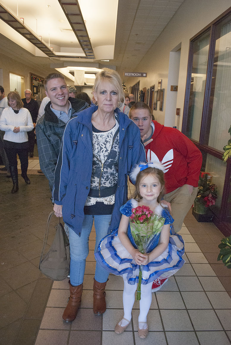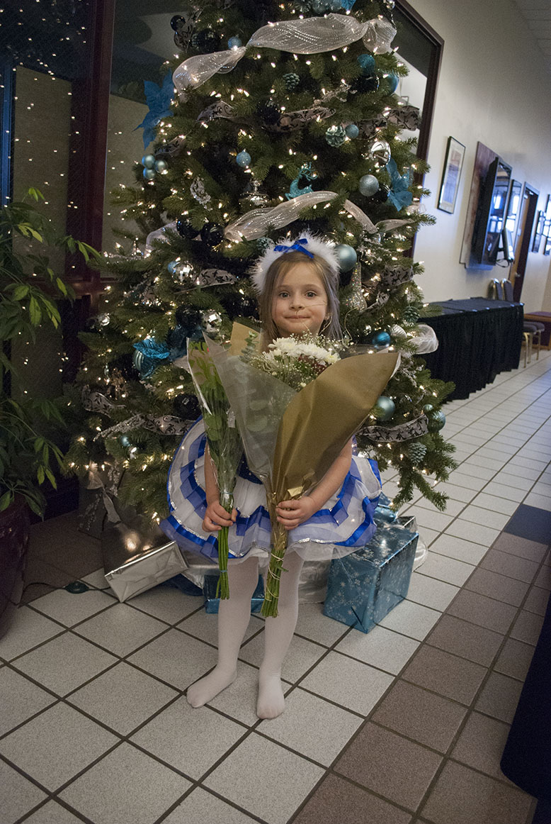 Her performances were so cute! We had very bad seats though, right in front of us was the speaker and I had a hard time getting good photos and Greg didn’t get the greatest video either. During intermission I went and got her from back stage and brought her to see all the family there to see her. She was very excited to see a bouquet of flowers. Besides all the attention this is her second favorite part. She loves getting flowers.