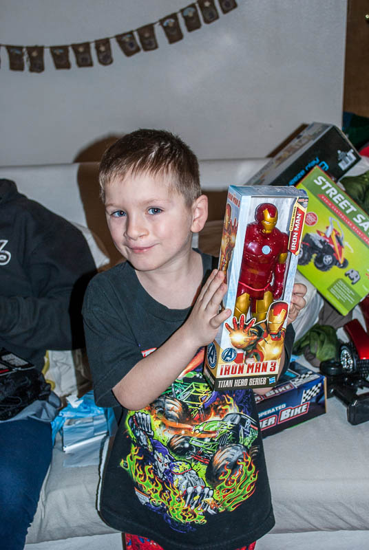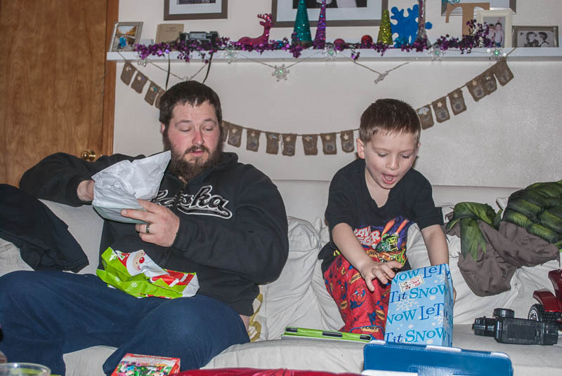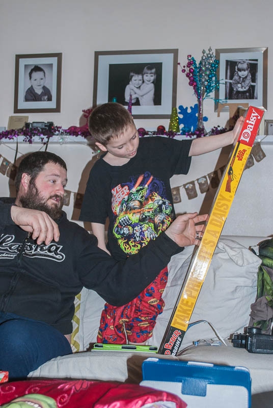 Jayse woke us up this year, usually I’m the excited one and can’t wait to get the kids up but this year he woke up early to go to the bathroom and saw everything so he came and woke us up. Then we all went and woke Jaelee up. They played a bit with the stuff Santa brought but it wasn’t long before they were ready to open presents.