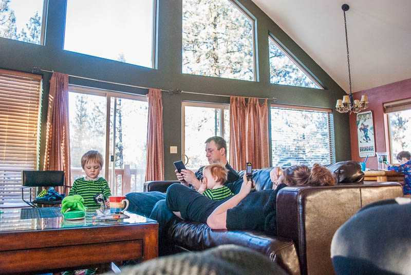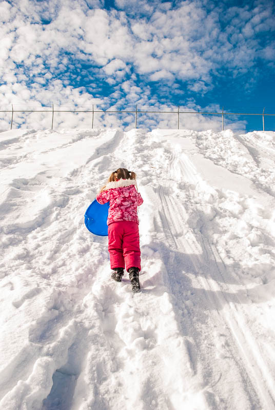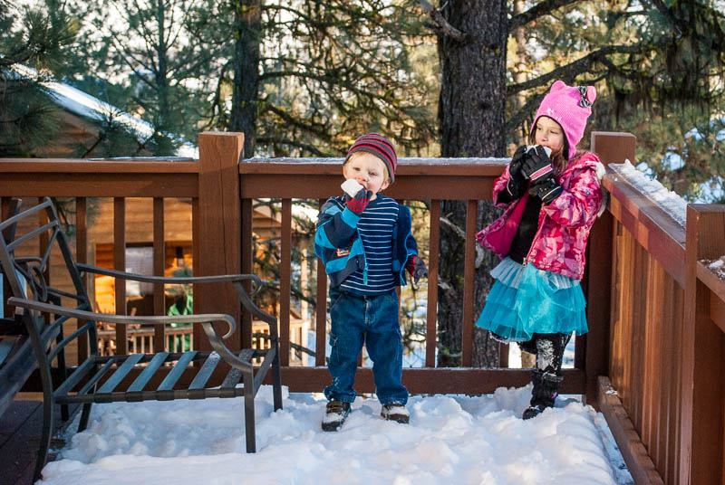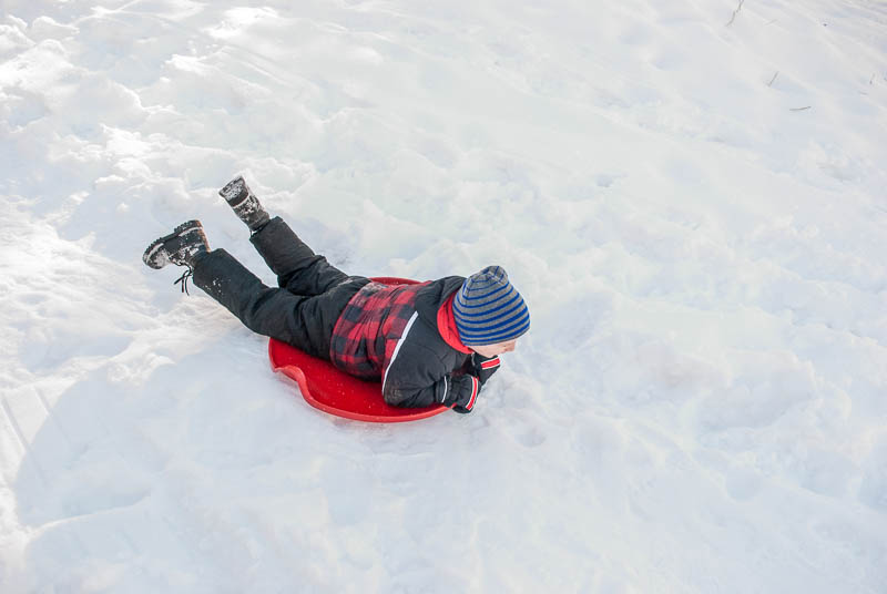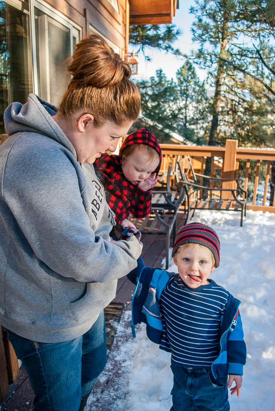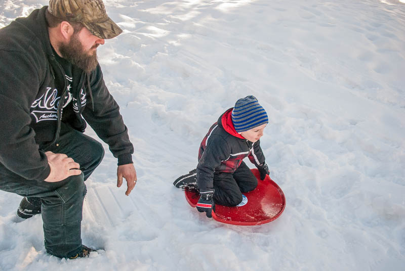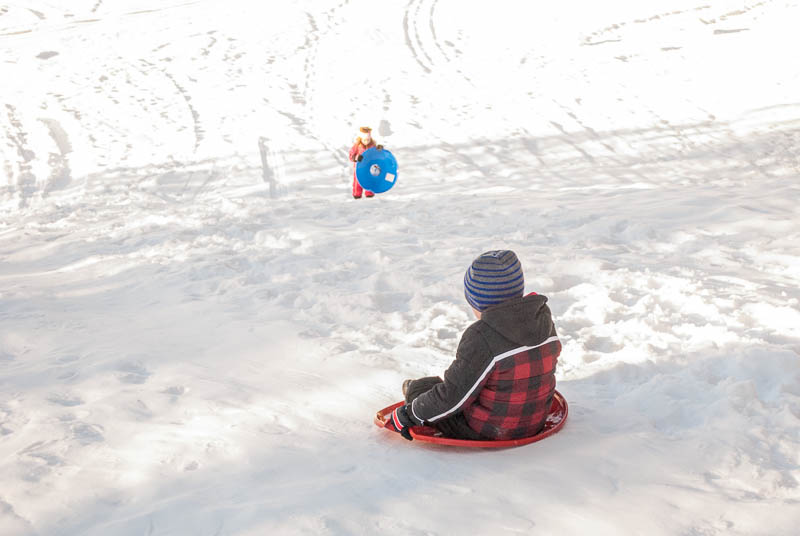 Back at the cabin the kids really wanted to go sledding. We found a great hill right below the cabin and they had a blast! As the evening was hitting we called it a day and headed up to the cabin for dinner. It was so nice having a cabin to make food instead of paying to eat out all the time and as a central hub for both our families, I loved it!