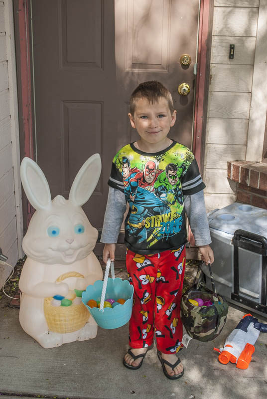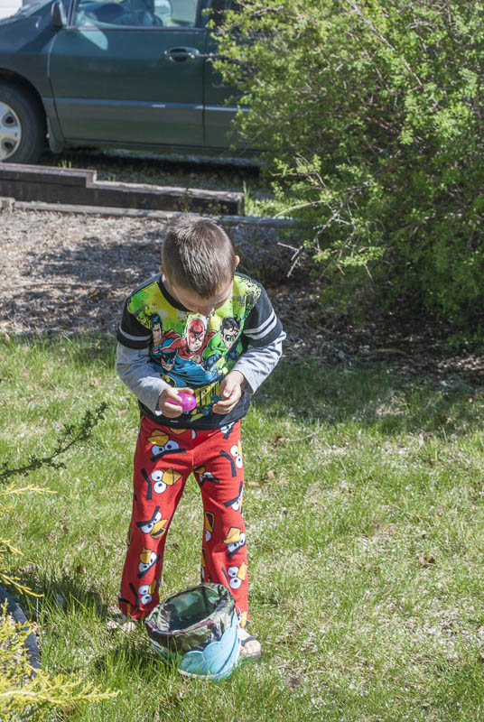 This year for Easter we did our traditions, we had an Easter egg hunt in our front yard and colored eggs. We have a ton of eggs so the kids each get to find 2 baskets full. Jaelee is super fast at finding eggs, she goes all out. Jayse likes to move a little slower so he doesn’t find as many and is left to find the harder ones.