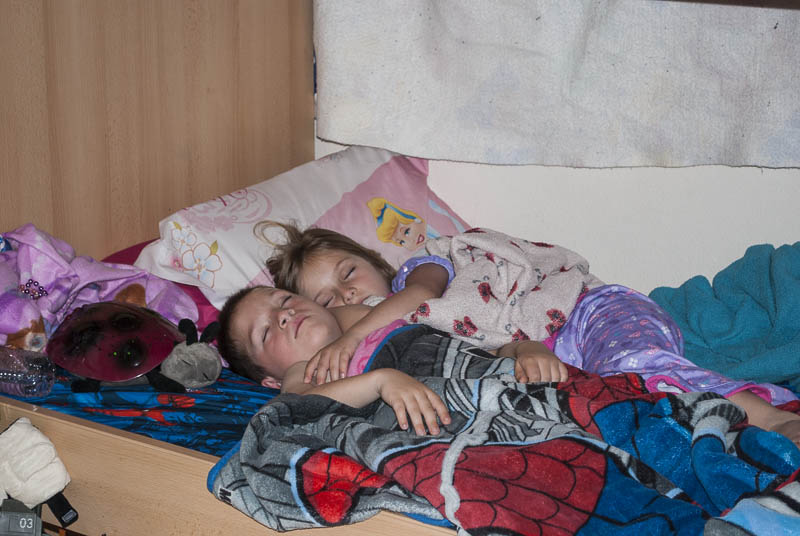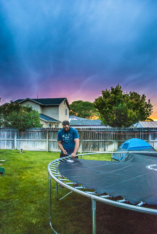 This year for their birthday the twins wanted a trampoline so for their birthday. So the night before their birthday Greg and I went outside to set up the trampoline so when they woke up their birthday morning the trampoline would be there. While we were setting it up, there was a beautiful sunset so I had to take a few pictures. I went into the house to check on the kids and make sure they were asleep and I saw them sleeping together and they looked so cute I also had to grab a picture of that.