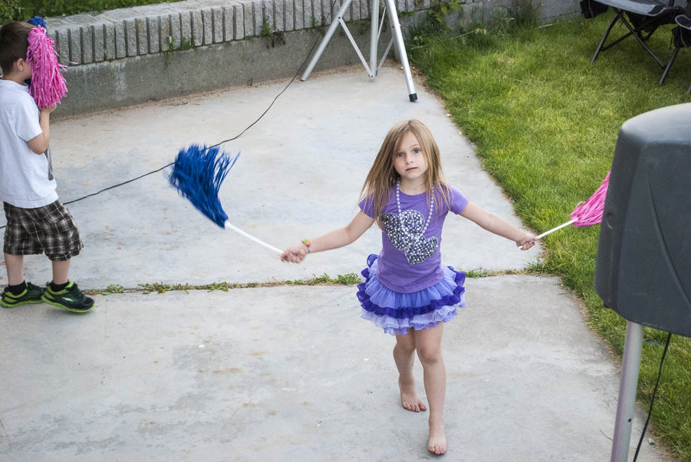 The kids and some adults jumped on the trampoline and then we had the pep rally full of cheers, games and the school song.