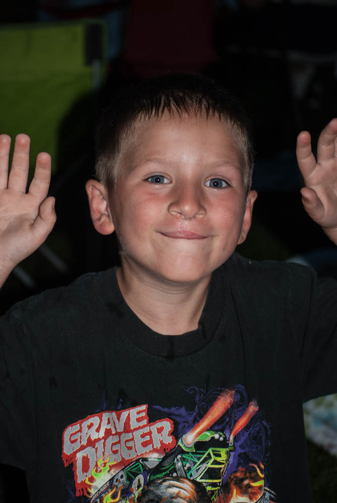After the BBQ we were going to go float the river but figured it was going to be way to busy so we went home and just hung out for a bit. Then we headed back out to Melba for the fireworks which are always good. This year Jaelee actually watched them. She still had her ears covered but she actually watched them. We also saw one of the most incredible mullets on a kid. I had to get a picture of it. LOL