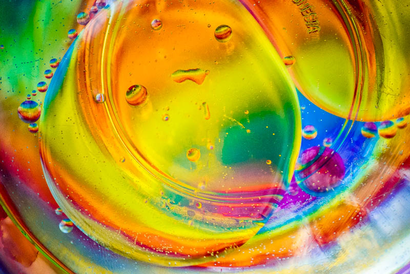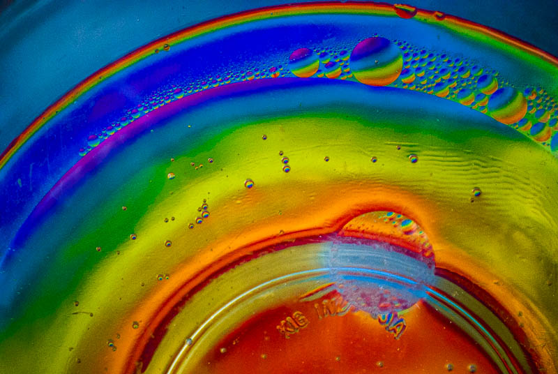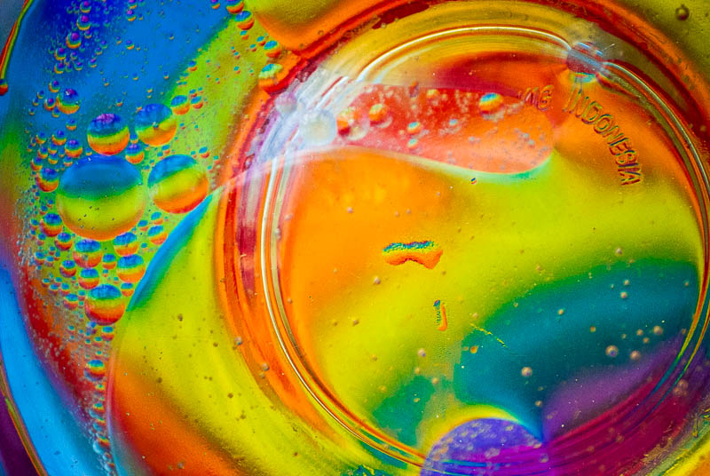I have been wanting to expand my photography so I thought I would try some abstract work. I put some water in a clear bowl above some colorful Tupperware lids I have. Then I dropped some oil into the bowl and it made some really colorful bubbles. I liked the way it turned out.