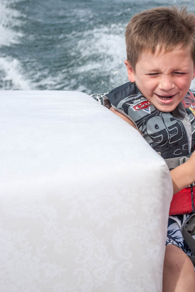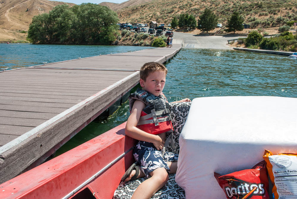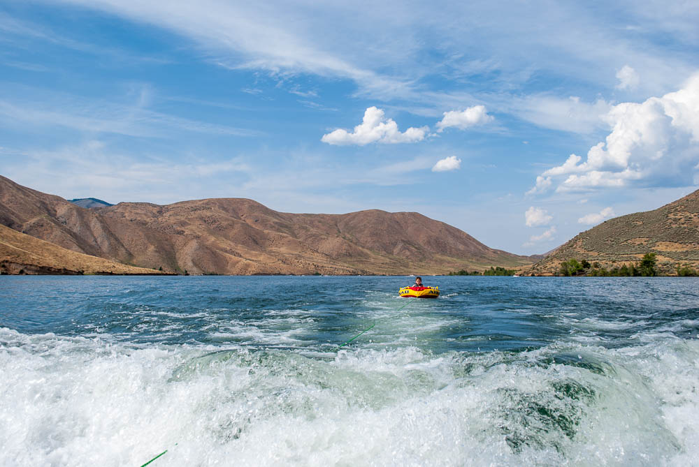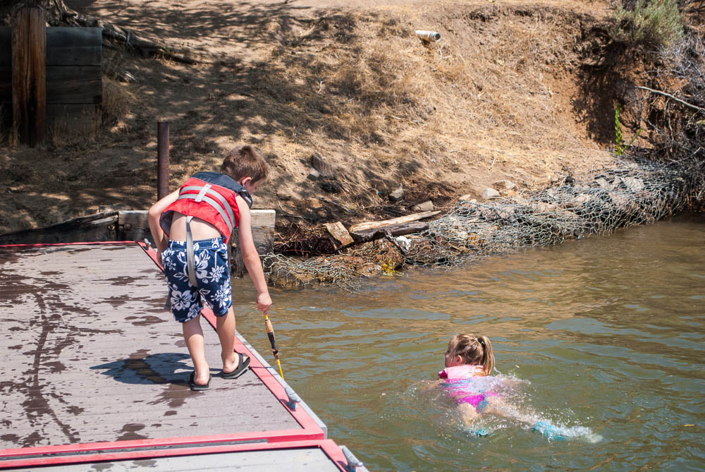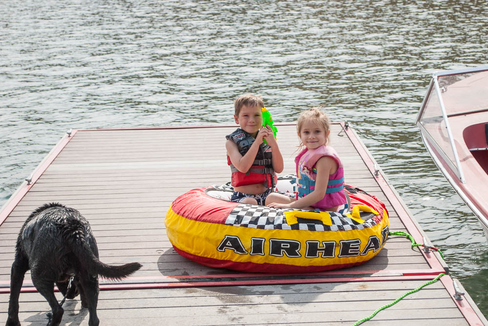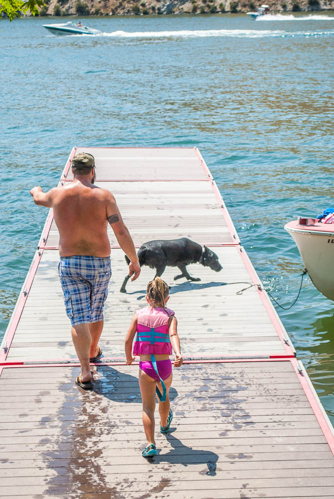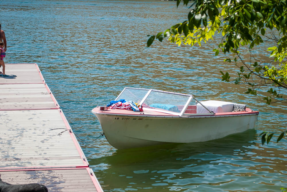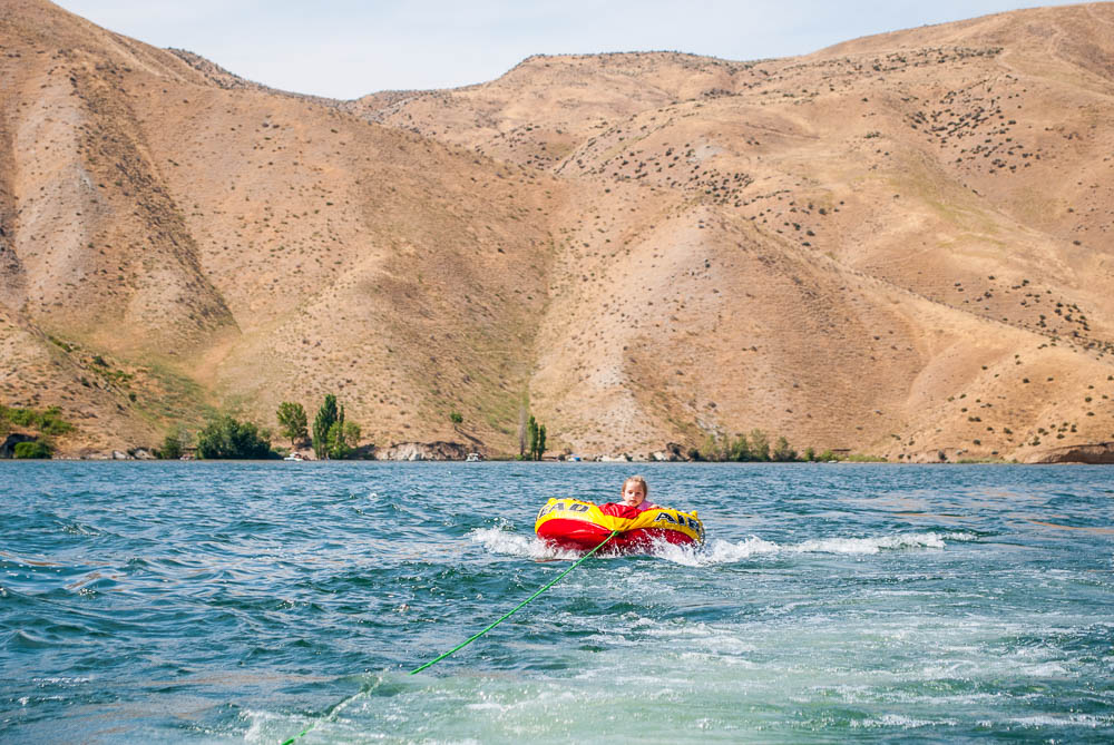 After our test run of the boat Greg did a few tweaks and I was itching to take it out on a real run. We drove up to Lucky Peak to spend the day out there. The boat ran like a champ. We found a dock to spend the day on. We docked the boat for a bit, swam around, ate lunch and then rode the tube. The kids had never done that before so I went first. I couldn’t get my fat butt in the tube to sit so I laid down on it. Greg pulled me around on my stomach. I was wiped all over the place with my legs flying in the air. Just when I thought I couldn’t hold on much longer Greg stopped the boat. My arms were dead. It was a struggle to get back in the boat but it was fun.