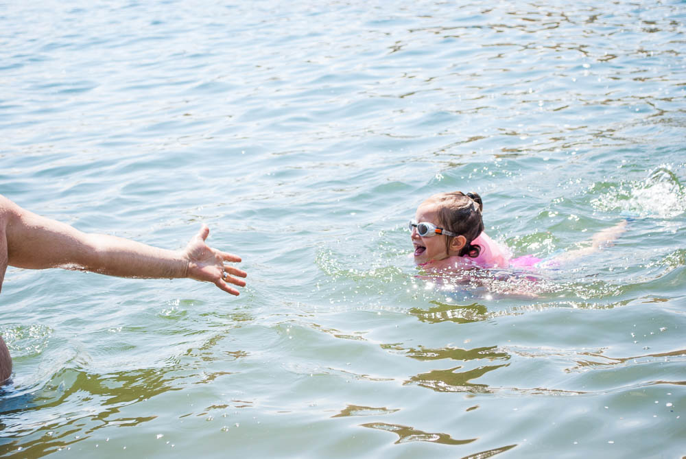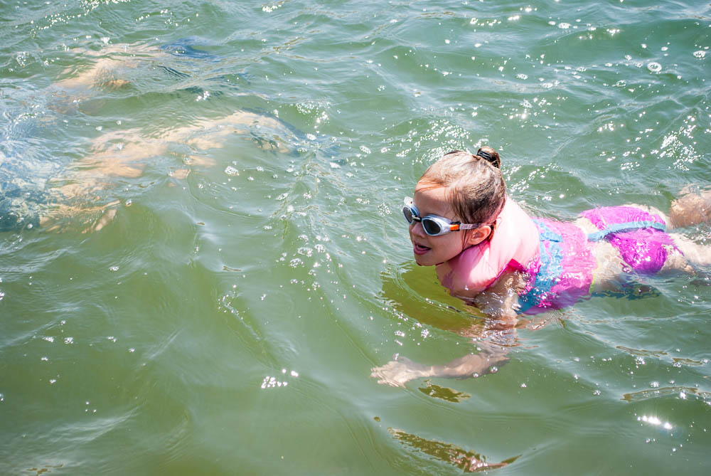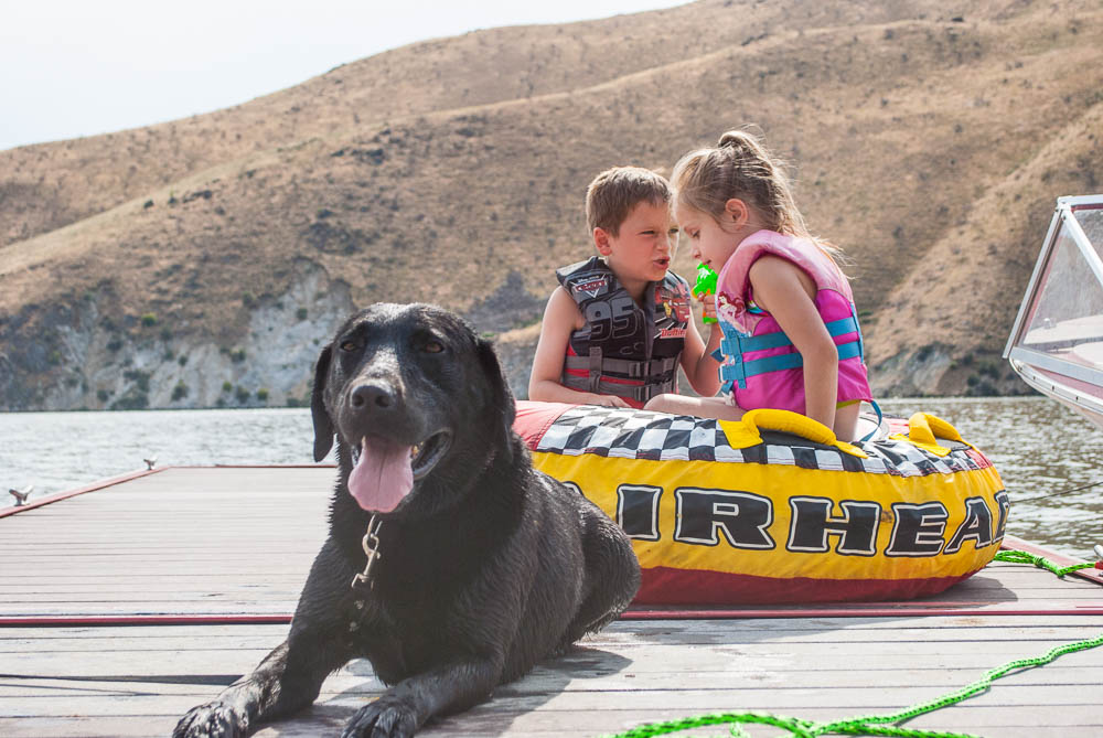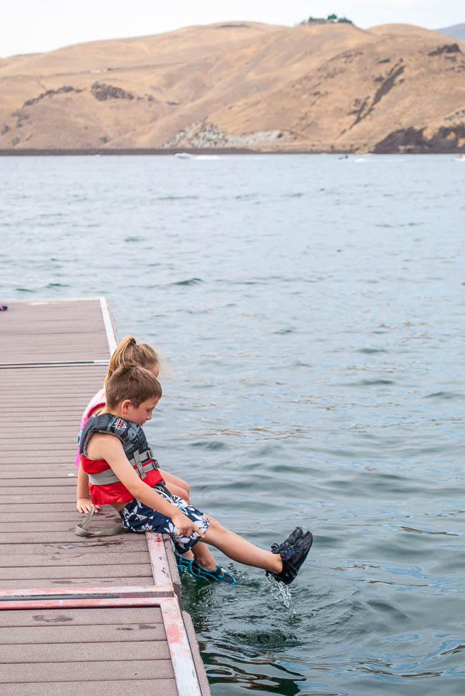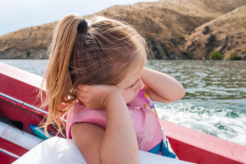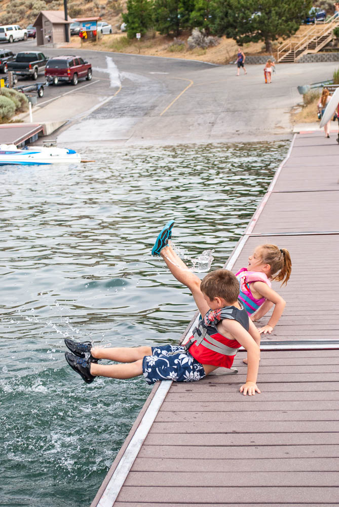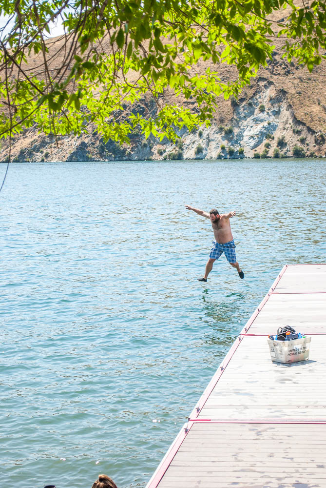 After our test run of the boat Greg did a few tweaks and I was itching to take it out on a real run. We drove up to Lucky Peak to spend the day out there. The boat ran like a champ. We found a dock to spend the day on. We docked the boat for a bit, swam around, ate lunch and then rode the tube. The kids had never done that before so I went first. I couldn’t get my fat butt in the tube to sit so I laid down on it. Greg pulled me around on my stomach. I was wiped all over the place with my legs flying in the air. Just when I thought I couldn’t hold on much longer Greg stopped the boat. My arms were dead. It was a struggle to get back in the boat but it was fun.